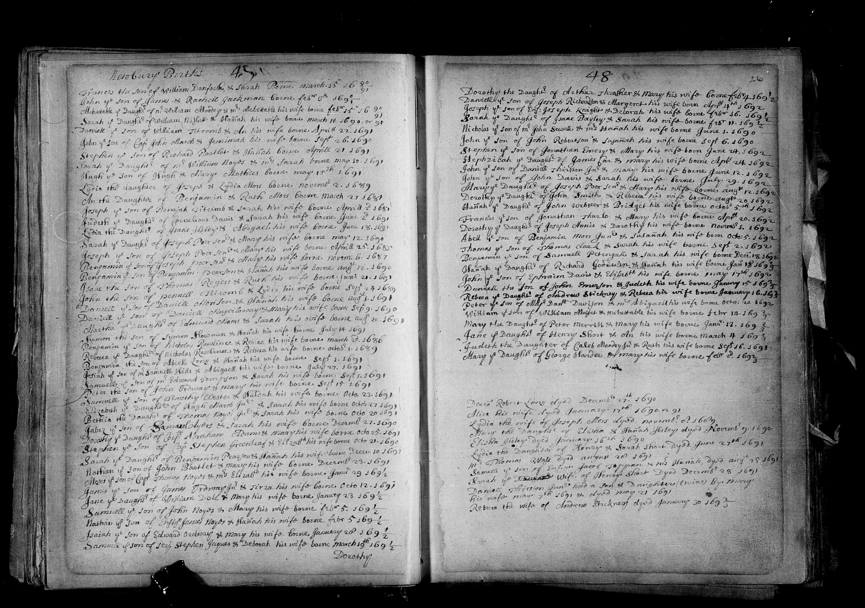 "Massachusetts Births and Christenings, 1639-1915," database, FamilySearch ( https://familysearch.org/ark:/61903/1:1:FHLB-PL5 : 4 December 2014), John Davis, 17 May 1692; citing Newbury, Essex, Massachusetts, 48; FHL microfilm 877,468.