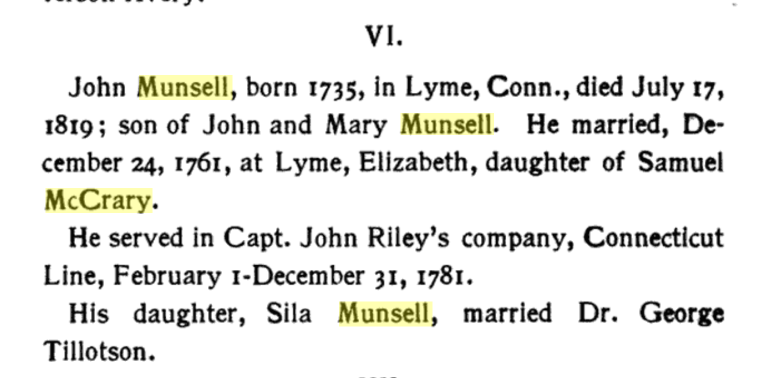 John Munsell & Elizabeth McCrary - The Revolutionary Ancestry of the Members of the Warren and Prescott Chapter by Massachusetts Daughters of the American Revolution 1899
