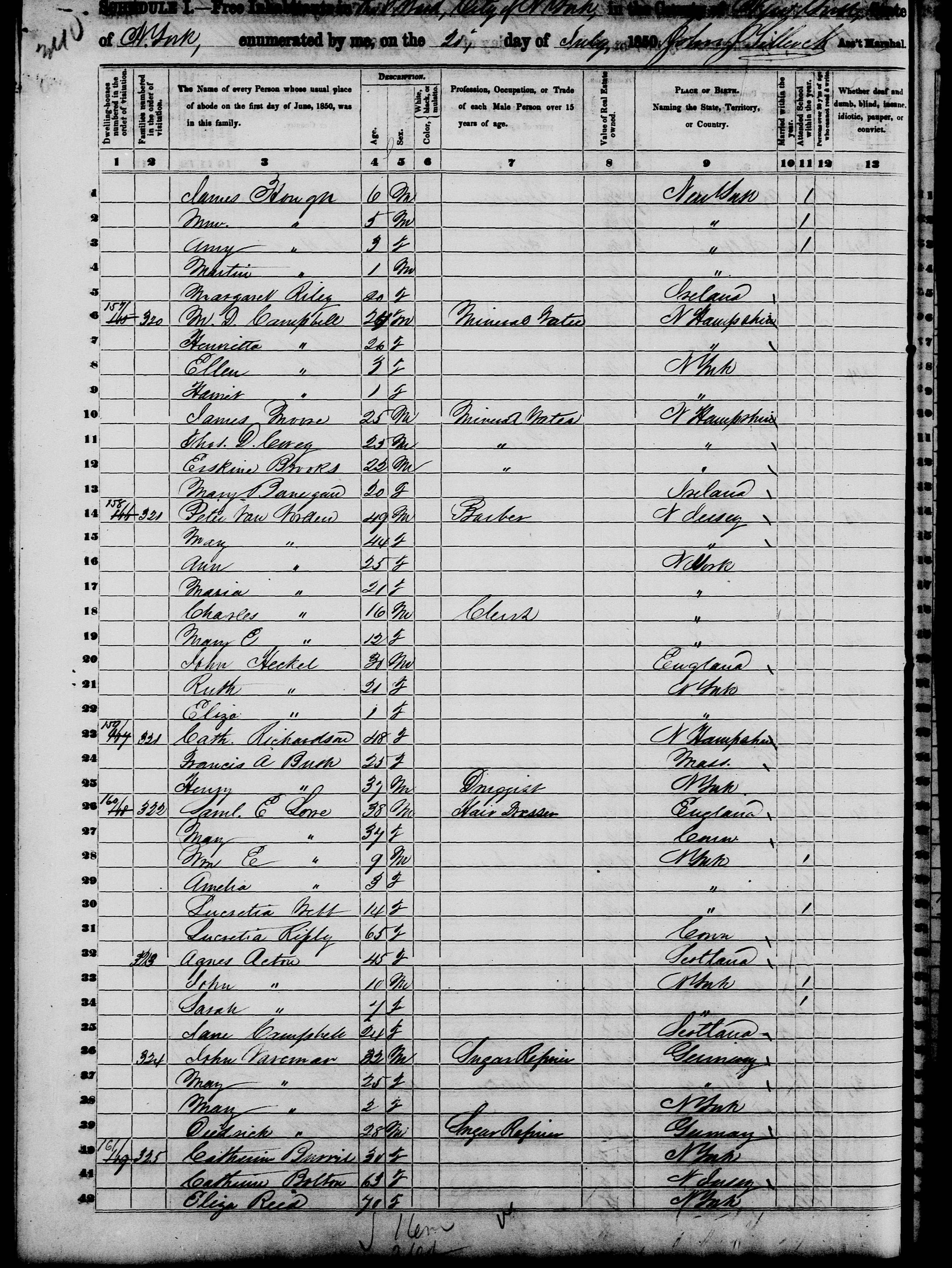 "United States Census, 1850," database with images, FamilySearch ( https://familysearch.org/ark:/61903/1:1:MCTD-QL3 : 9 November 2014), Peter Van Norden, New York City, ward 8, New York, New York, United States; citing family 321, NARA microfilm publication M432 (Washington, D.C.: National Archives and Records Administration, n.d.).