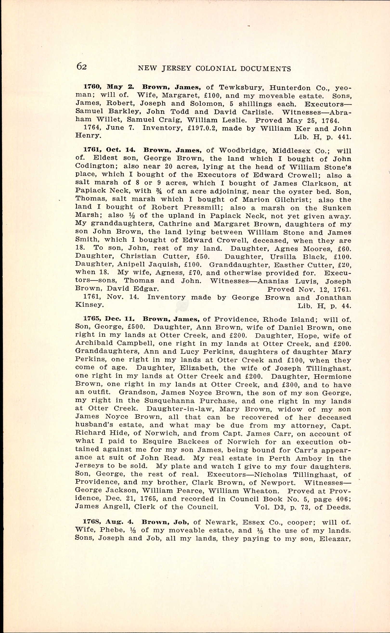 James Brown - New Jersey, Abstract of Wills, 1670-1817