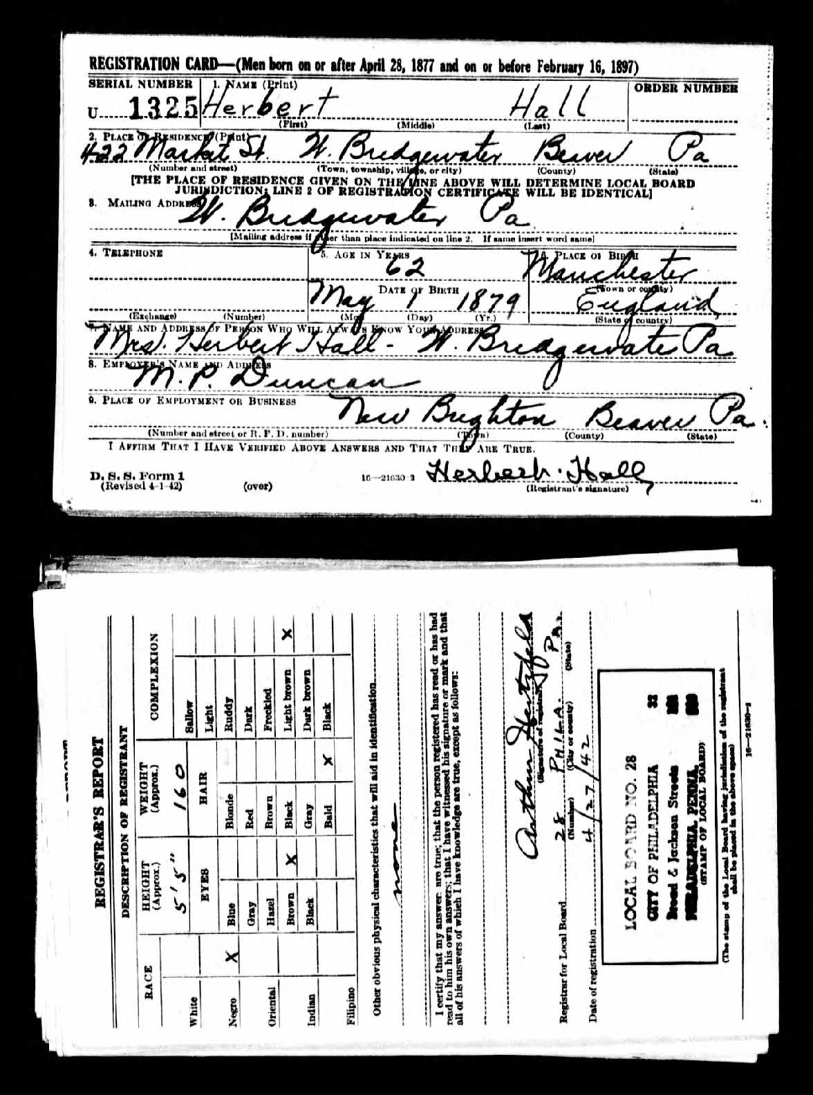 Herbert Hall - U.S., World War II Draft Registration Cards, 1942