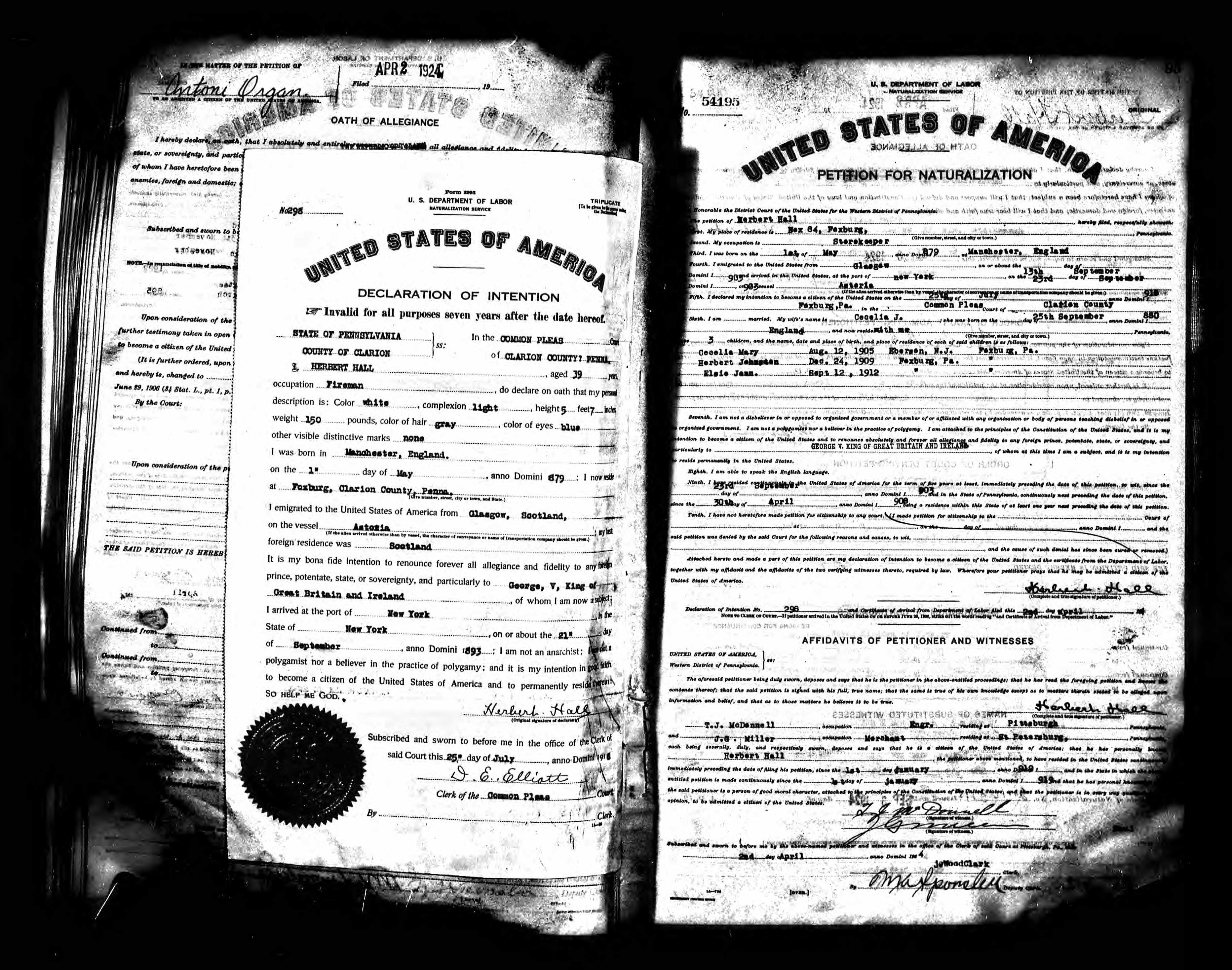 Herbert Hall - Pennsylvania, Federal Naturalization Records, 1795-1931