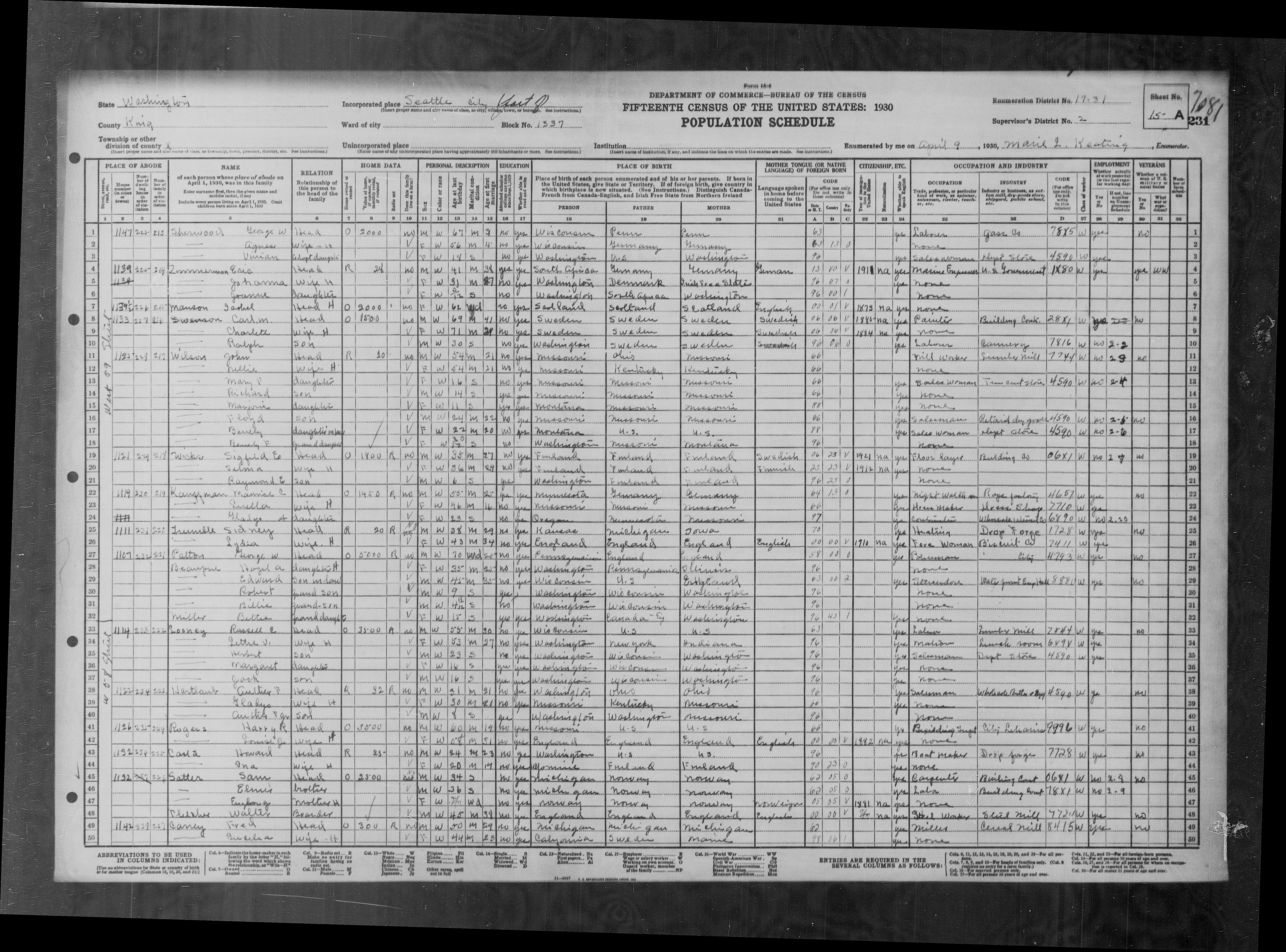Agnes Wherlie - 1930 United States Federal Census