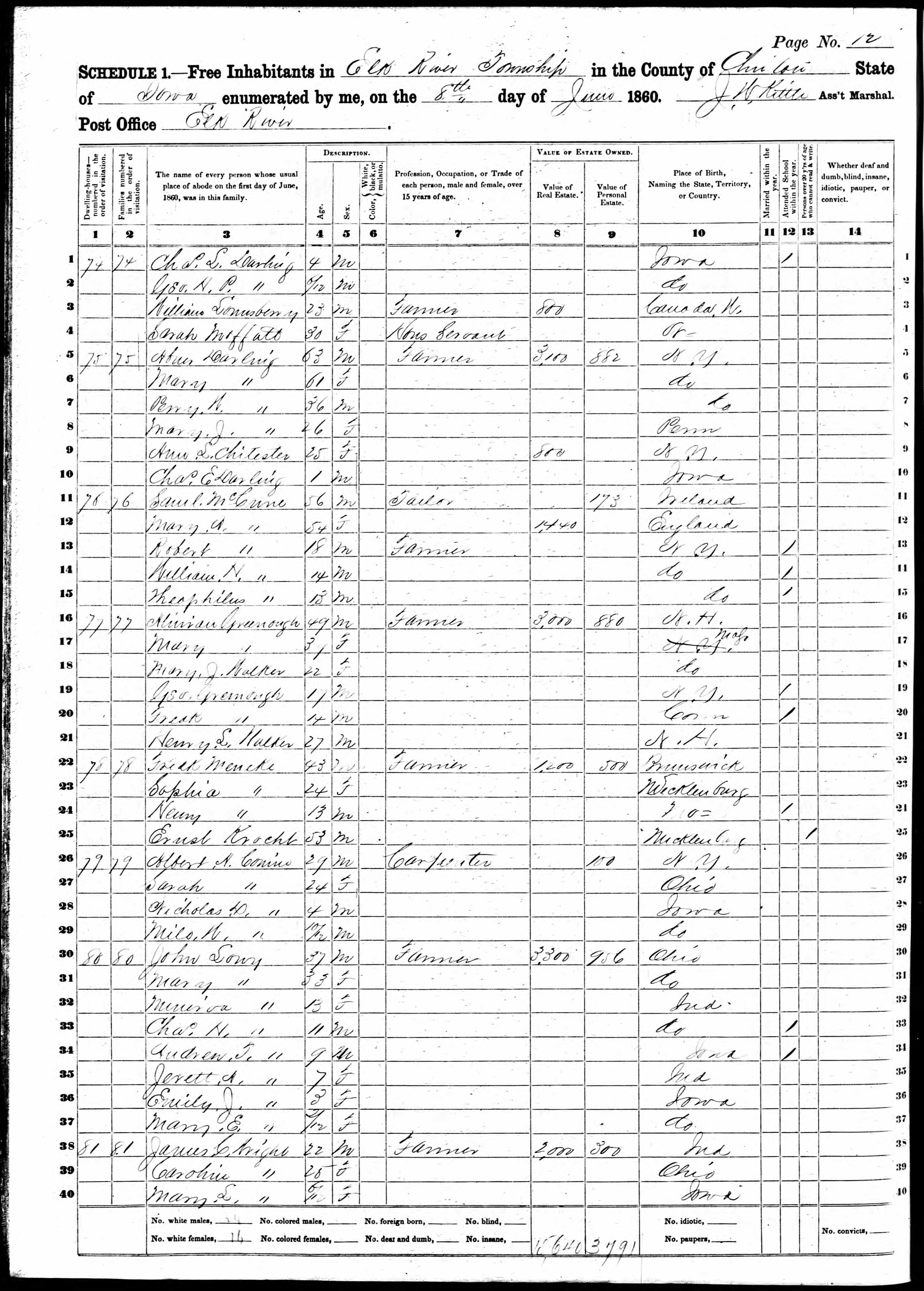 Sarah Lowry & Albert A Conine - 1860 United States Federal Census