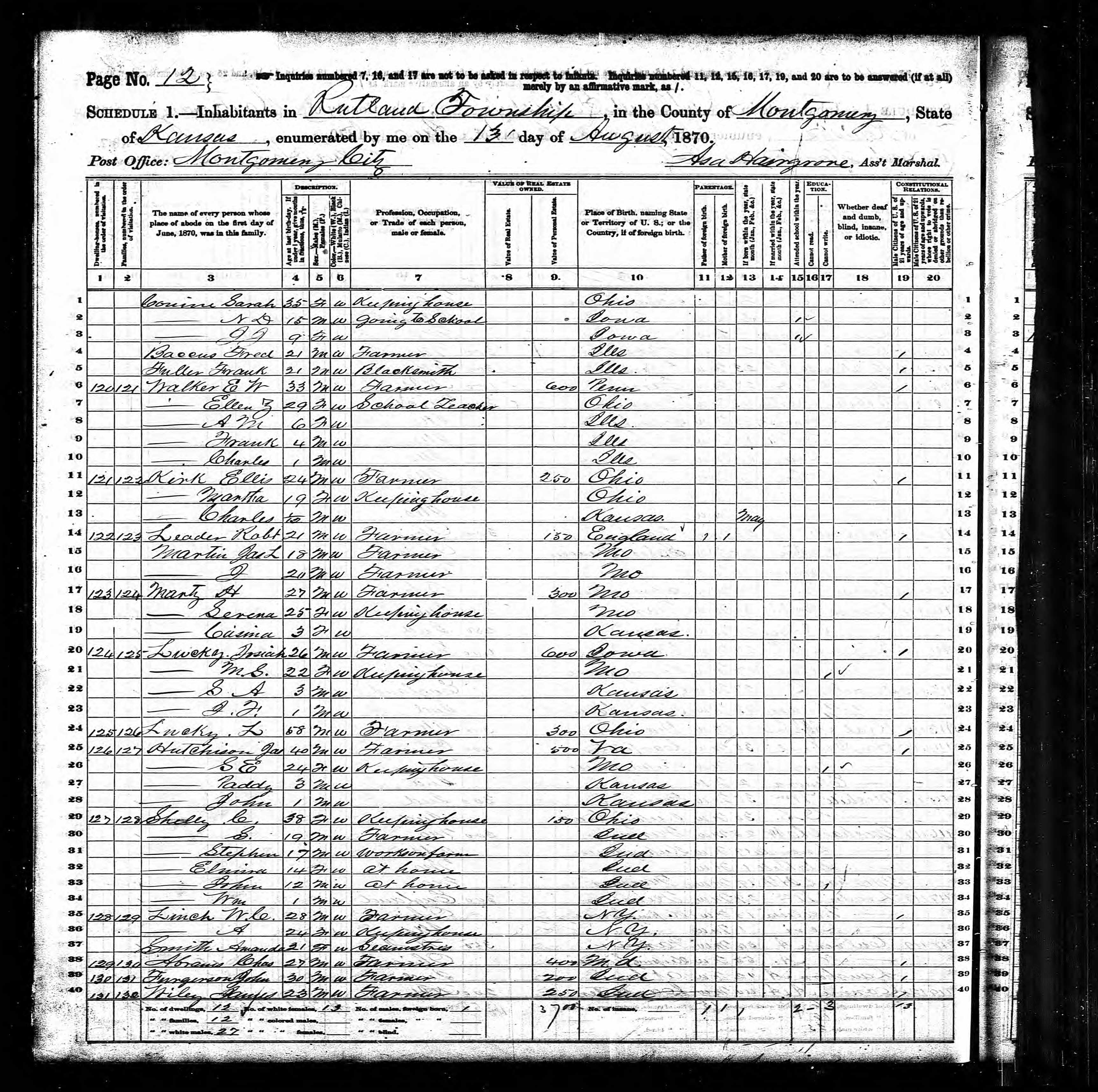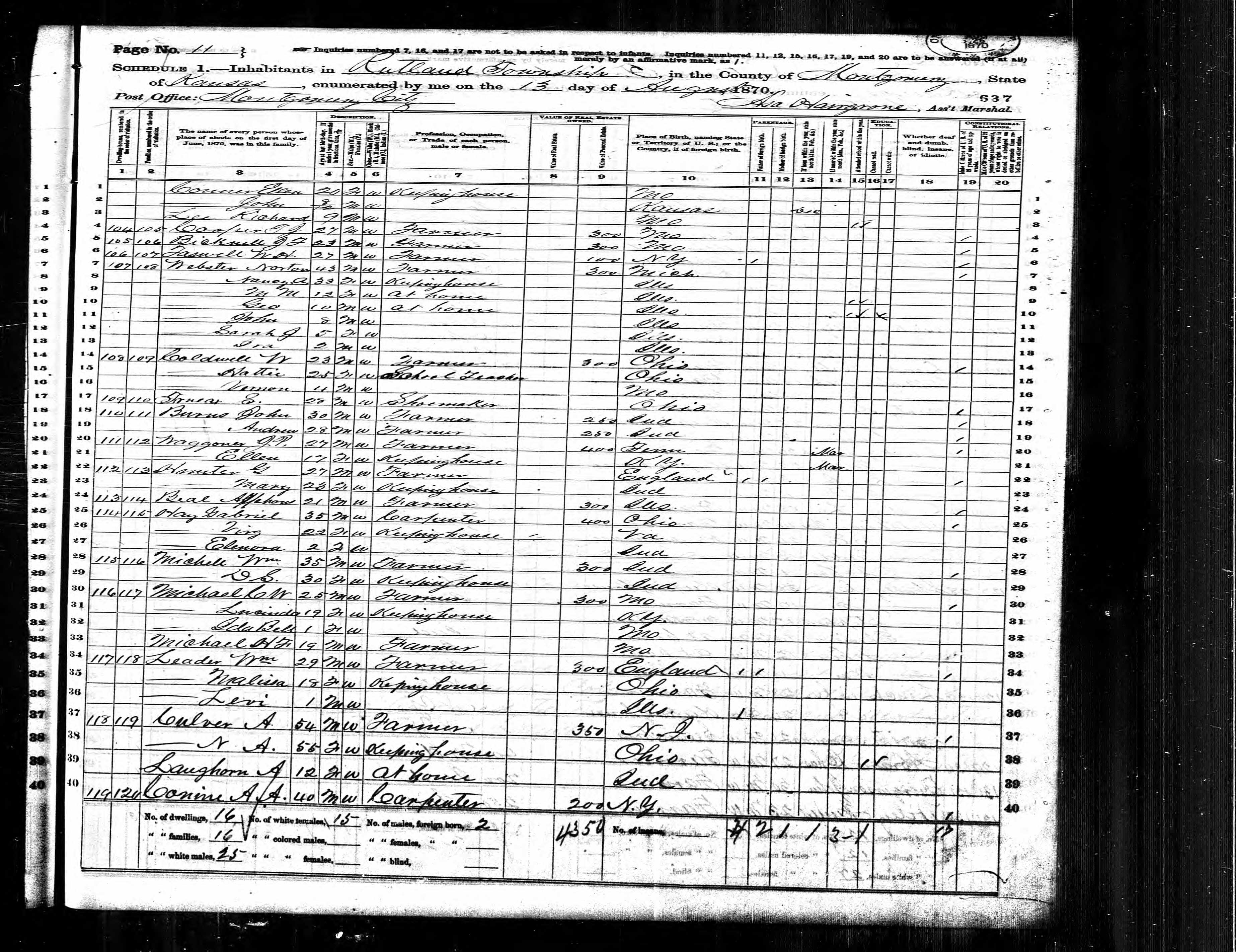 Home in 1870: Rutland, Montgomery, Kansas
