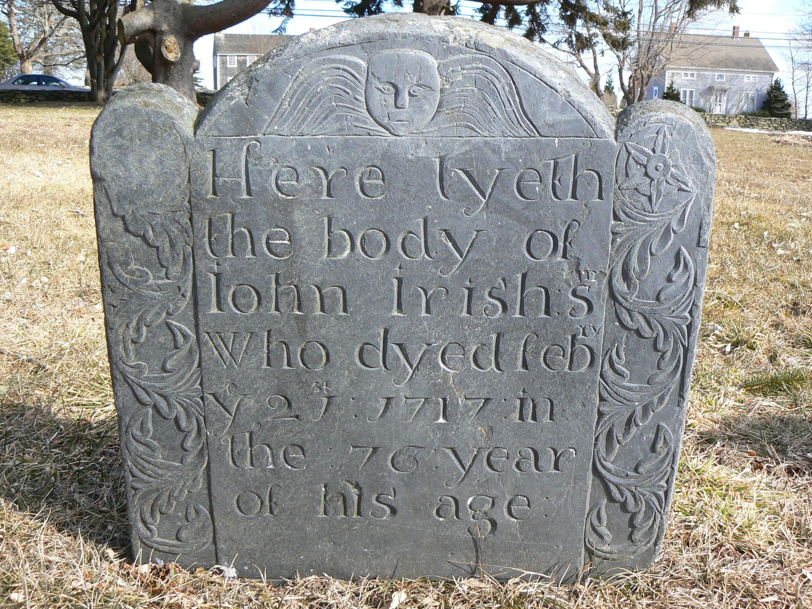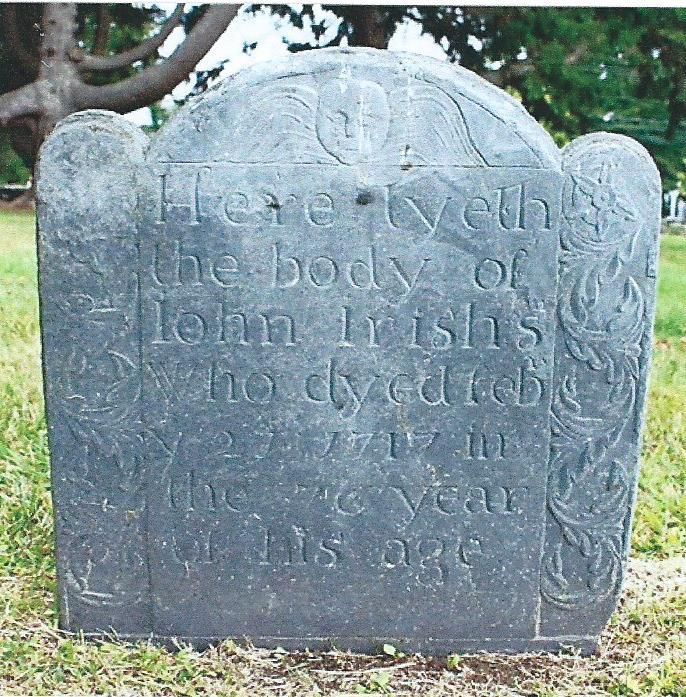 John Irish Jr. was a carpenter by trade, and lived at Duxbury, MA., then moving to Little Compton, Rhode Island in about 1673. As a youth he was listed as a servant to Captian Miles Standish and was mentioned in the Standish will. He was appointed as Constable of Little Compton on 7-5-1678, with the oath of office being administered by Captian Benjamin Church. He was a surveyor of highways in Little Compton in 1683. John is buried on the old Irish farm located across the road from the Friends Meeting House near Little Compton, Rhode Island.