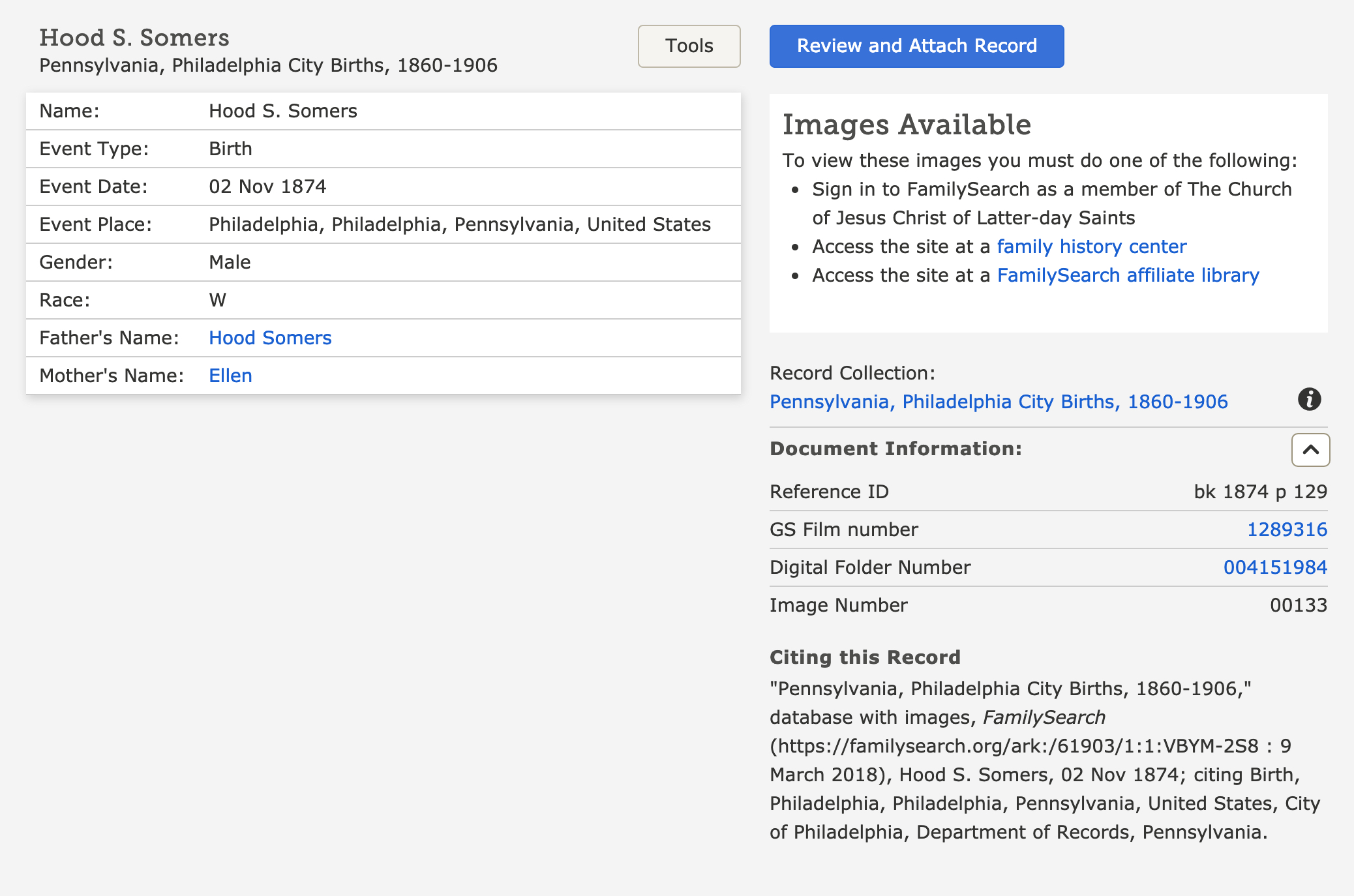 Father's Name Hood Somers