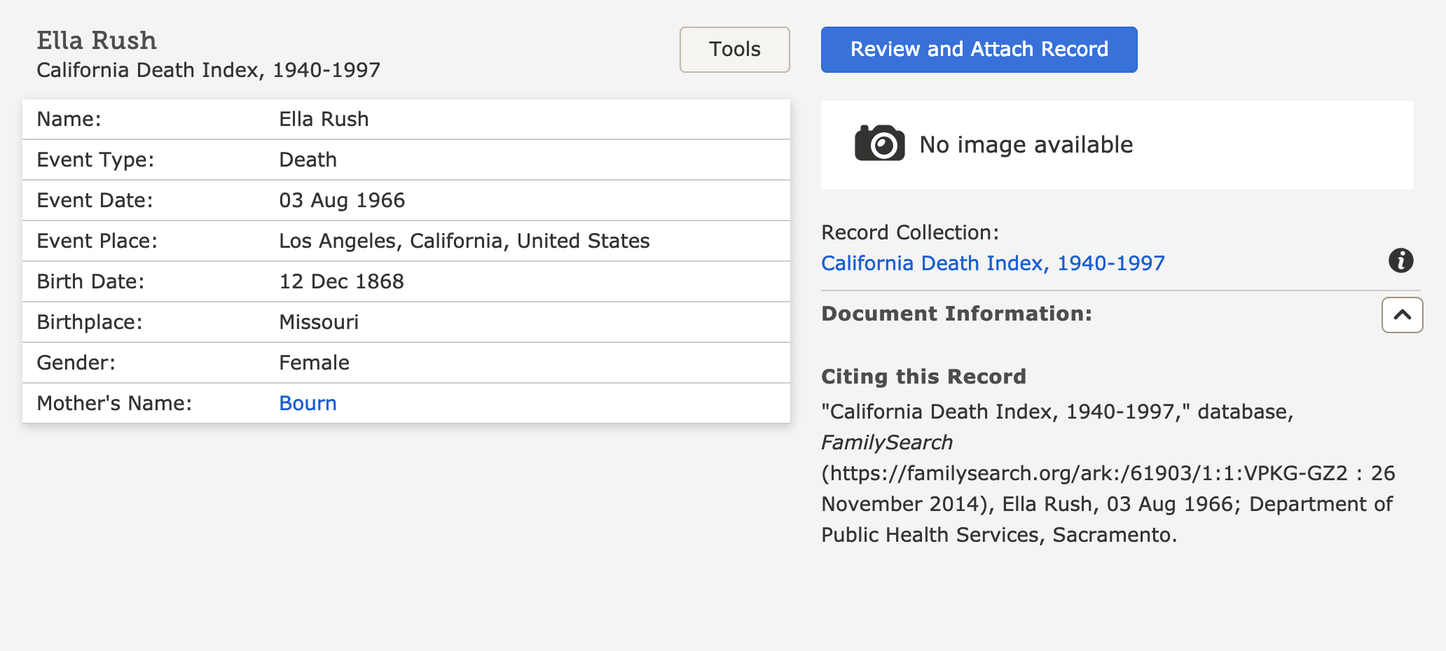 Ella Lilla Medley - California Death Record