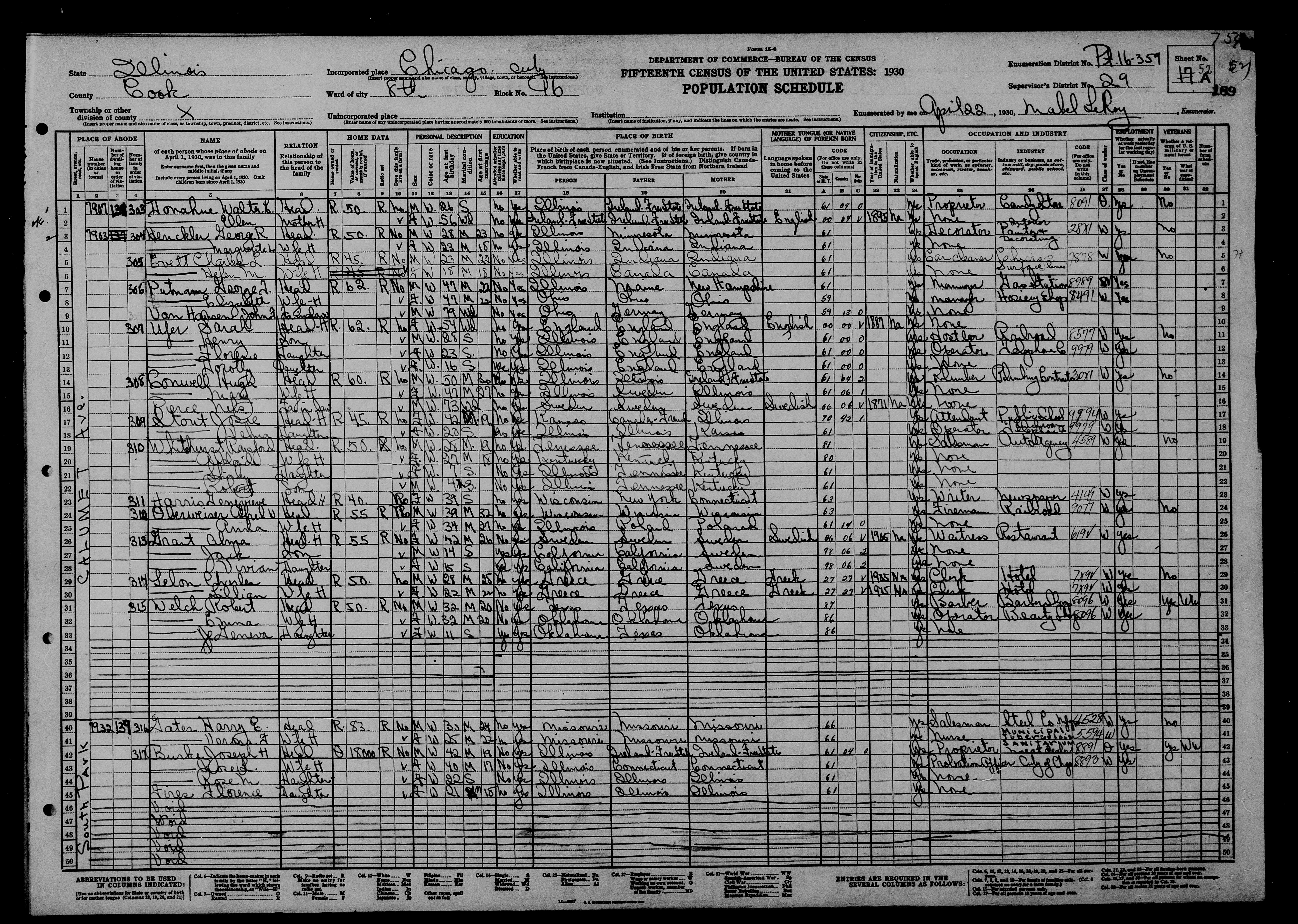Harry Erwin Gates - 1930 United States Federal Census