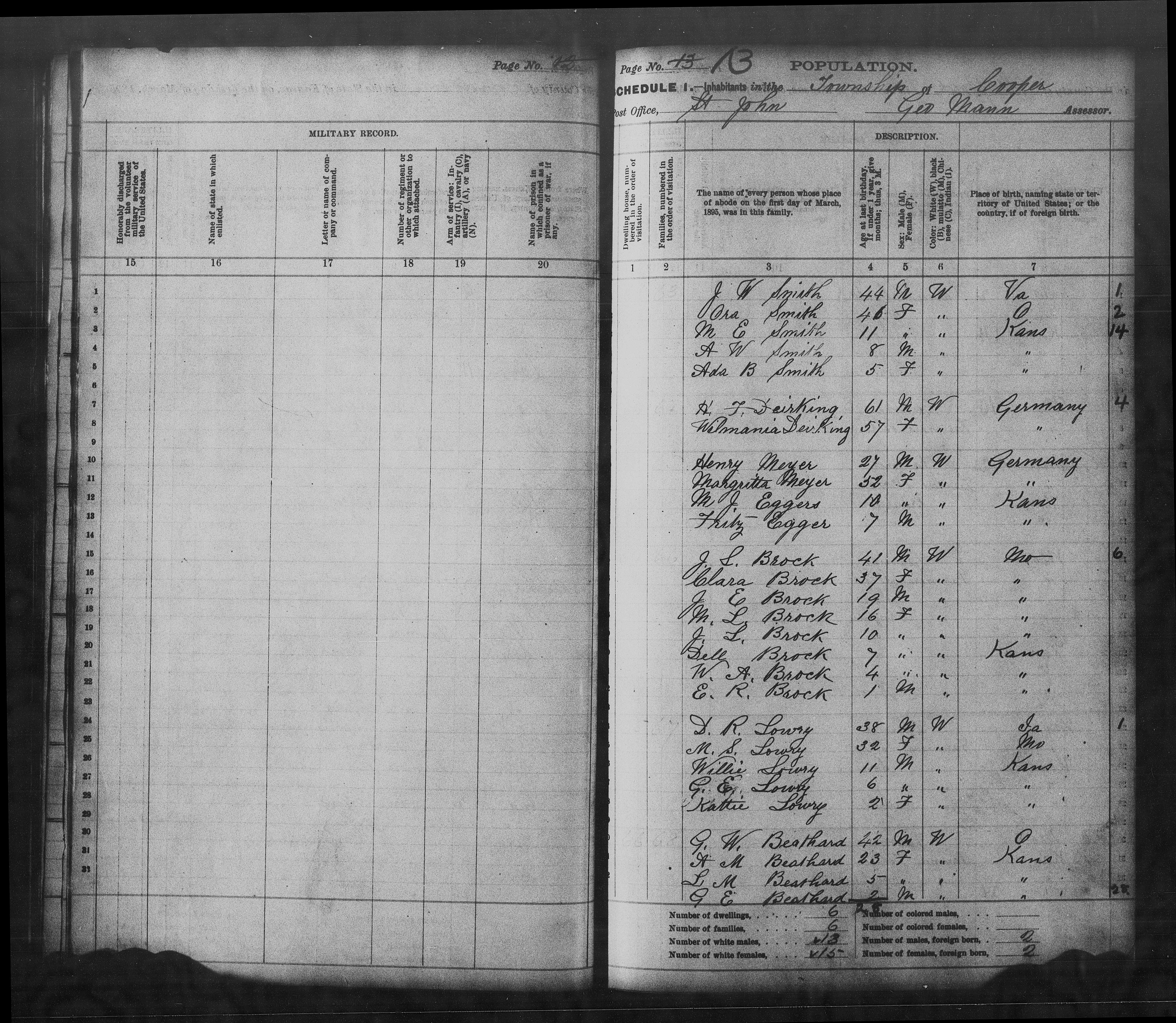 "Kansas State Census, 1895", database with images, FamilySearch ( https://familysearch.org/ark:/61903/1:1:QL8V-YVNR : 11 November 2017), D R Lowry, 1895.