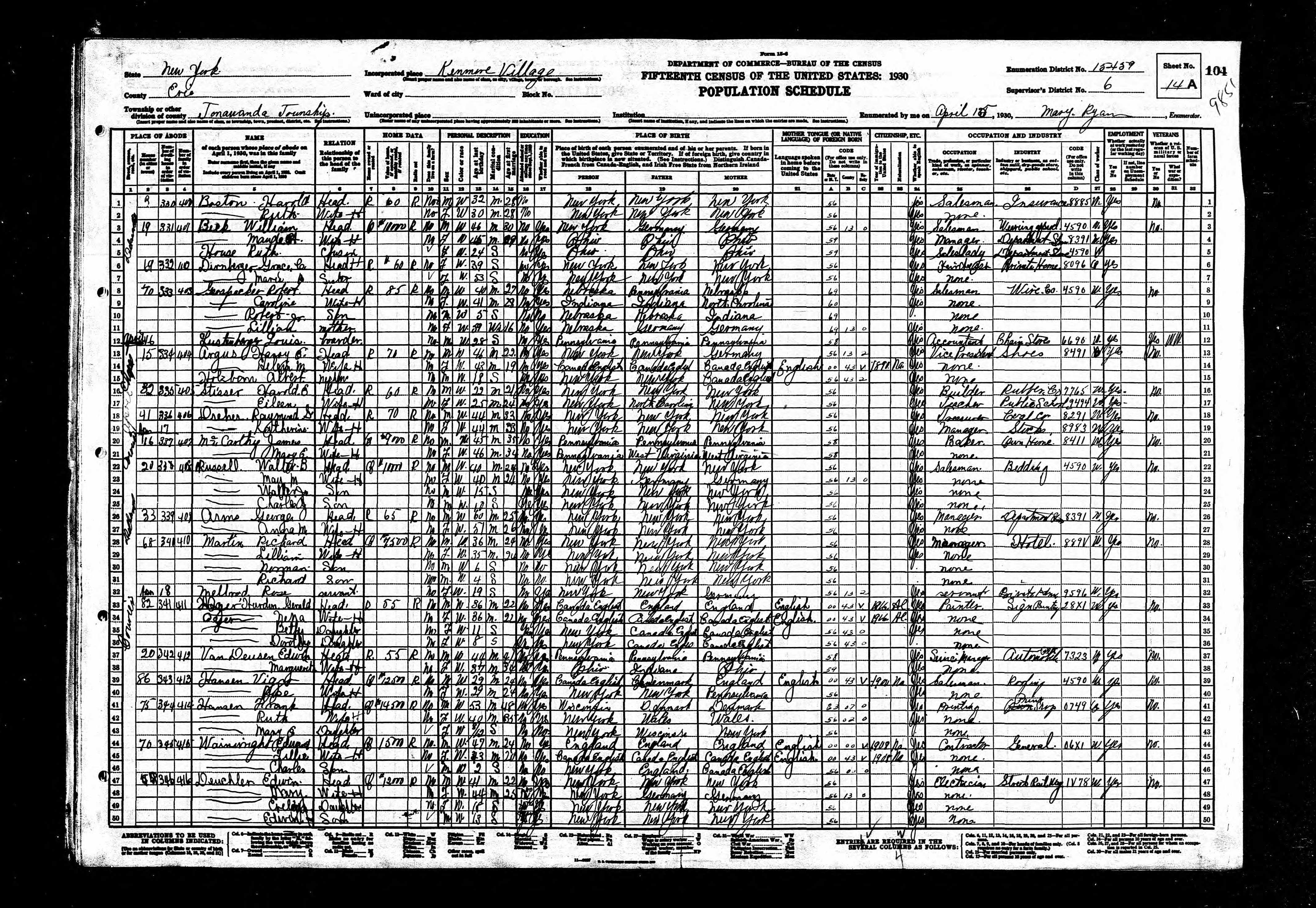 Edwin Parmalee Van Deusen - 1930 United States Federal Census