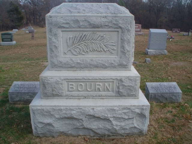 John J. Bourn, a well-to-do farmer and stock dealer of Scotland County, Mo., and a resident of Miller Township, was born in Howard County, Mo., September 17, 1836, son of John D. and Nancy (Higbee) Bourn. It is thought that the father was a native of Fayette County, Ky. He died in Scotland County, Mo., in the year 1878, when eighty-four years of age. He came from Lexington, Ky., to Howard County, Mo., at a very early date, and was one of the county's early settlers. In 1841 he moved to Scotland County, where he followed the plasterer's trade for some time. He then turned his attention to farming and to the office of magistrate, having been elected to that office, which he held for several years. His father was a soldier in the Revolutionary war. The mother of our subject was a native of Fayette County, Ky., and at the time of her death, which occurred in July, 1868, was sixty seven years of age. She was the daughter of Joseph Higbee, a native of Germany, who came to America before the Revolutionary war, and took part in that memorable struggle. The parents of our subject were members of the Missionary Baptist Church, and to their marriage were born eight children. He received a fair education in the schools of Lewis County, Mo., and Davis County, Iowa. At the age of twenty-one he left his parents, and began to improve the property he now calls home. He remained a resident of Scotland County until 1865, when he made a tour westward, and worked in the mines near Virginia City, Mont. Since 1867 he has made Scotland County, Mo., his home. On the 24th of February, 1860, he wedded Miss Adeline Stewart, a native of Ohio, born September 9, 1839, and died in November, 1861. She was a daughter of William Stewart, and was a member of the Missionary Baptist Church. To this marriage was born one son, James E. January 24, 1864, our subject married Julia A. Buford, a daughter of Henry P. Buford. She was born in Schuyler County, Mo., April 10, 1844, and by her marriage became the mother of two children, both sons: Robert H. and John D. The former is deceased. Our subject is a Freemason, is a decided advocate of the Democratic platform, and he and his wife are members of the Missionary Baptist Church.History of Lewis, Clark, Knox and Scotland Counties Missouri", V.2 Biographical Appendix. Goodspeed Publishing, 1887, p. 1150, 1151(Contributor: Pam Witherow)
