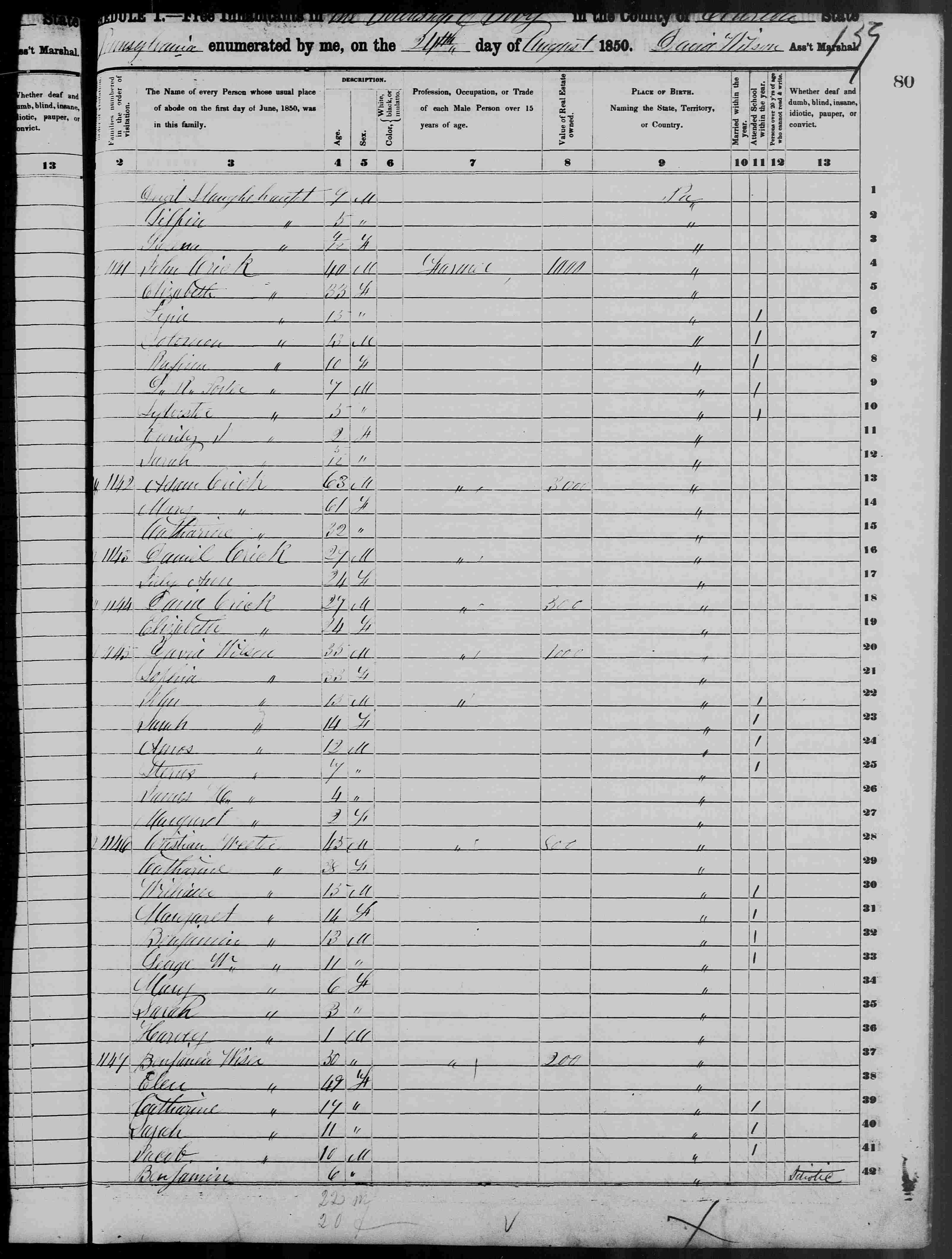 Adam Crick & Mary Hammer - 1850 United States Federal Census