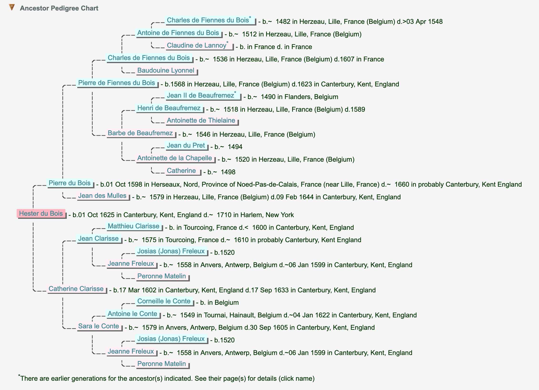 New York Gen and Bio Record; Vol. XCIV, Number 3; NY JUL 1963; pp 129-131; Article title " ESTHER DU BOIS, SECOND WIFE OF CLAUDE LE MAITRE"; Contributed by H. Minot Pitman, fasg, 88 Summit Ave.