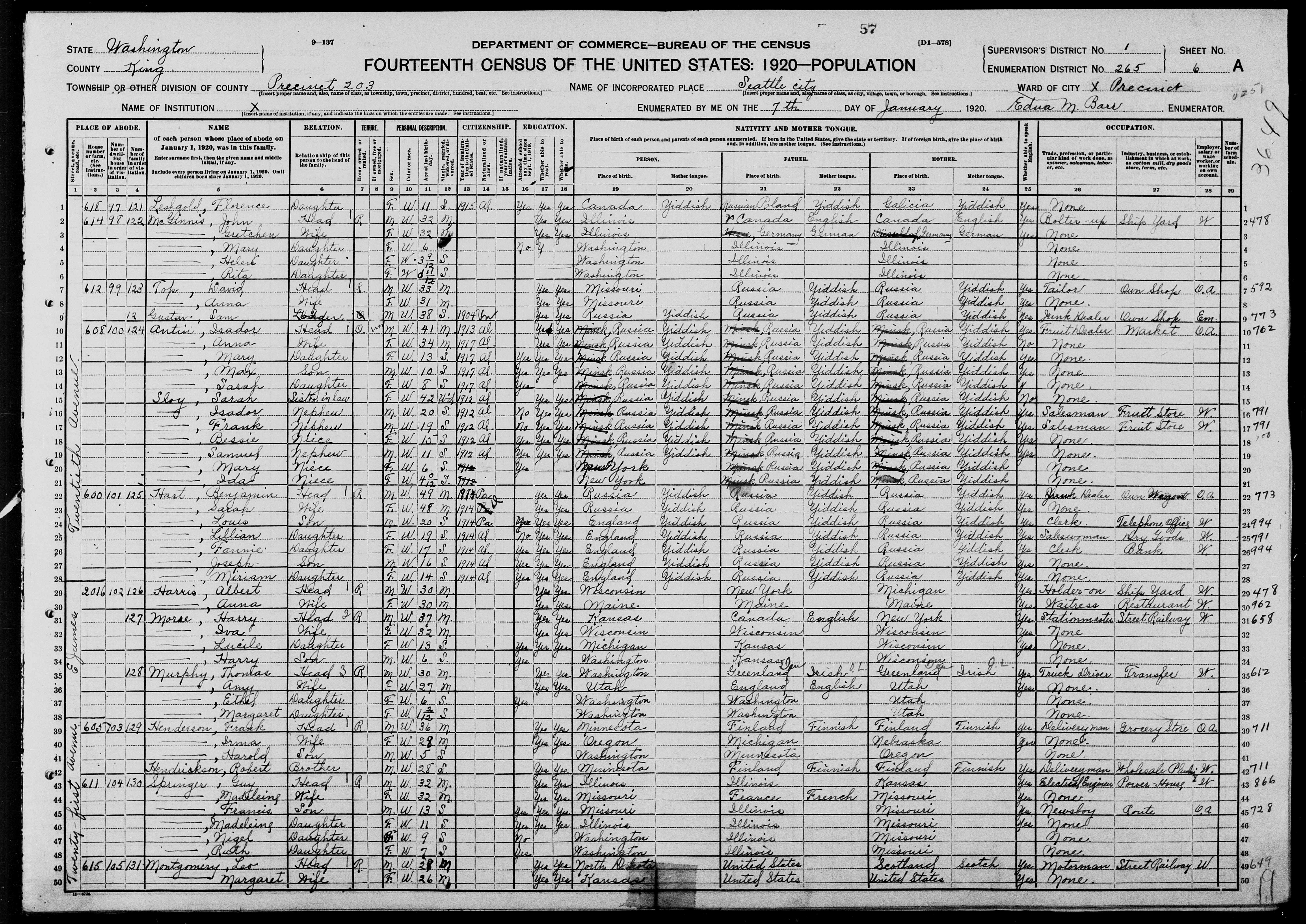 John Patrick McGinnis - 1920 United States Federal Census