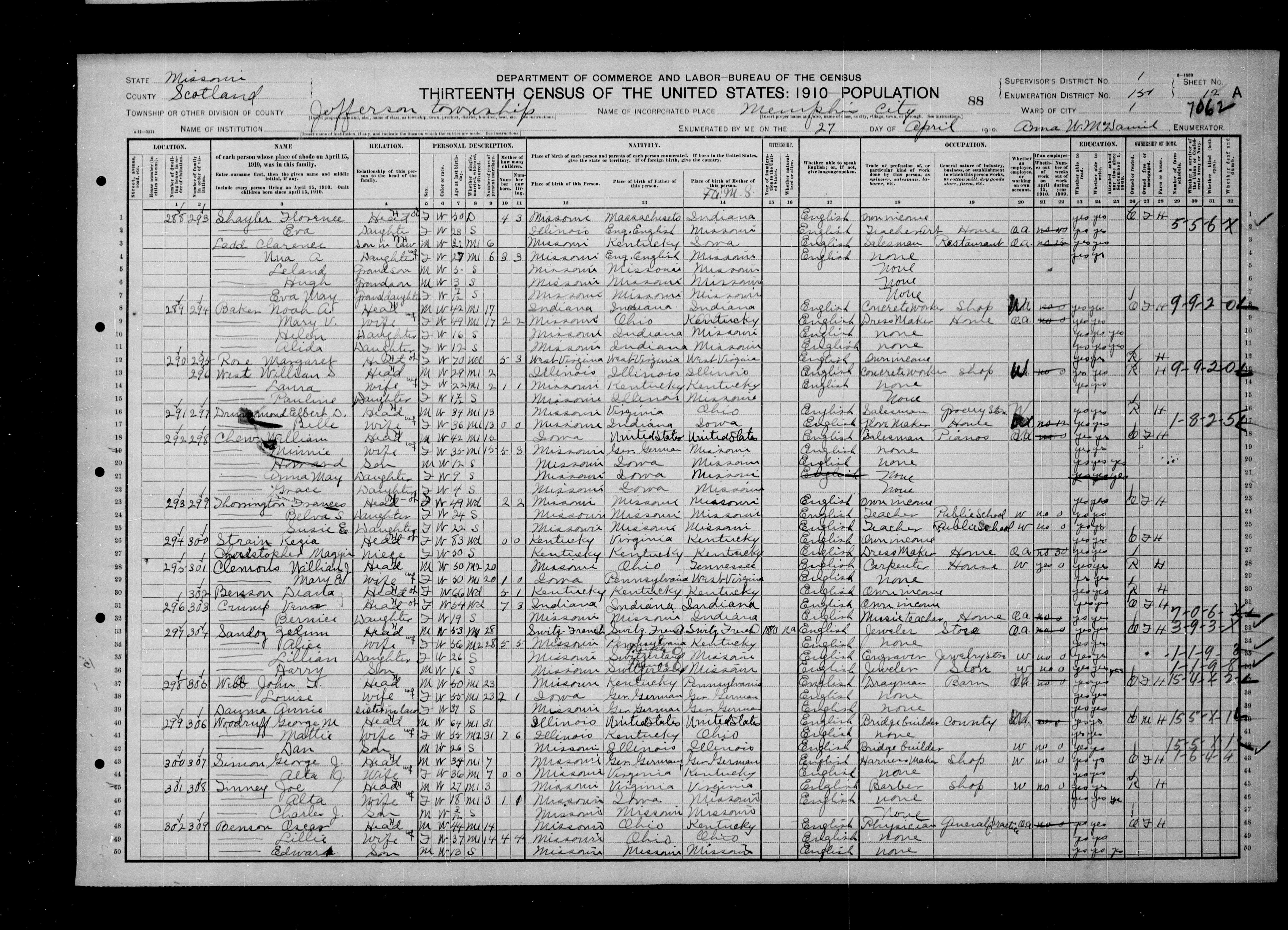 Event Place (Original): Memphis Ward 1, 151, Scotland, Missouri