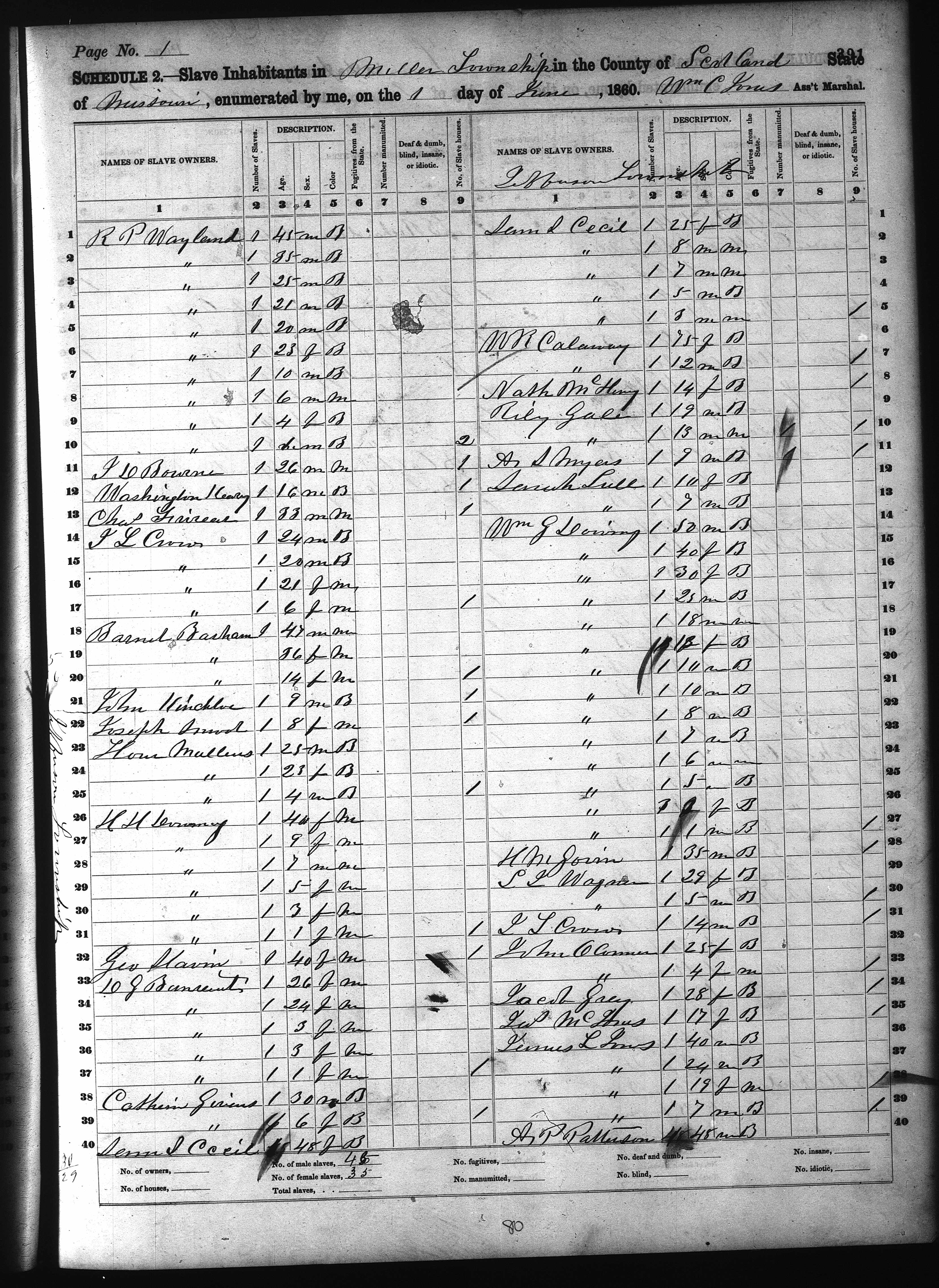 John Davis Bourne - 1860 Slave Schedule