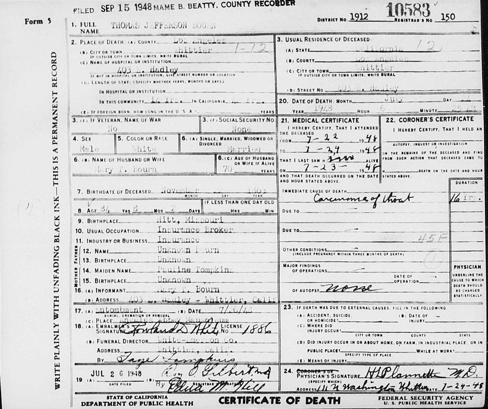 Death Date: 24 Jul 1948 (aged 84)