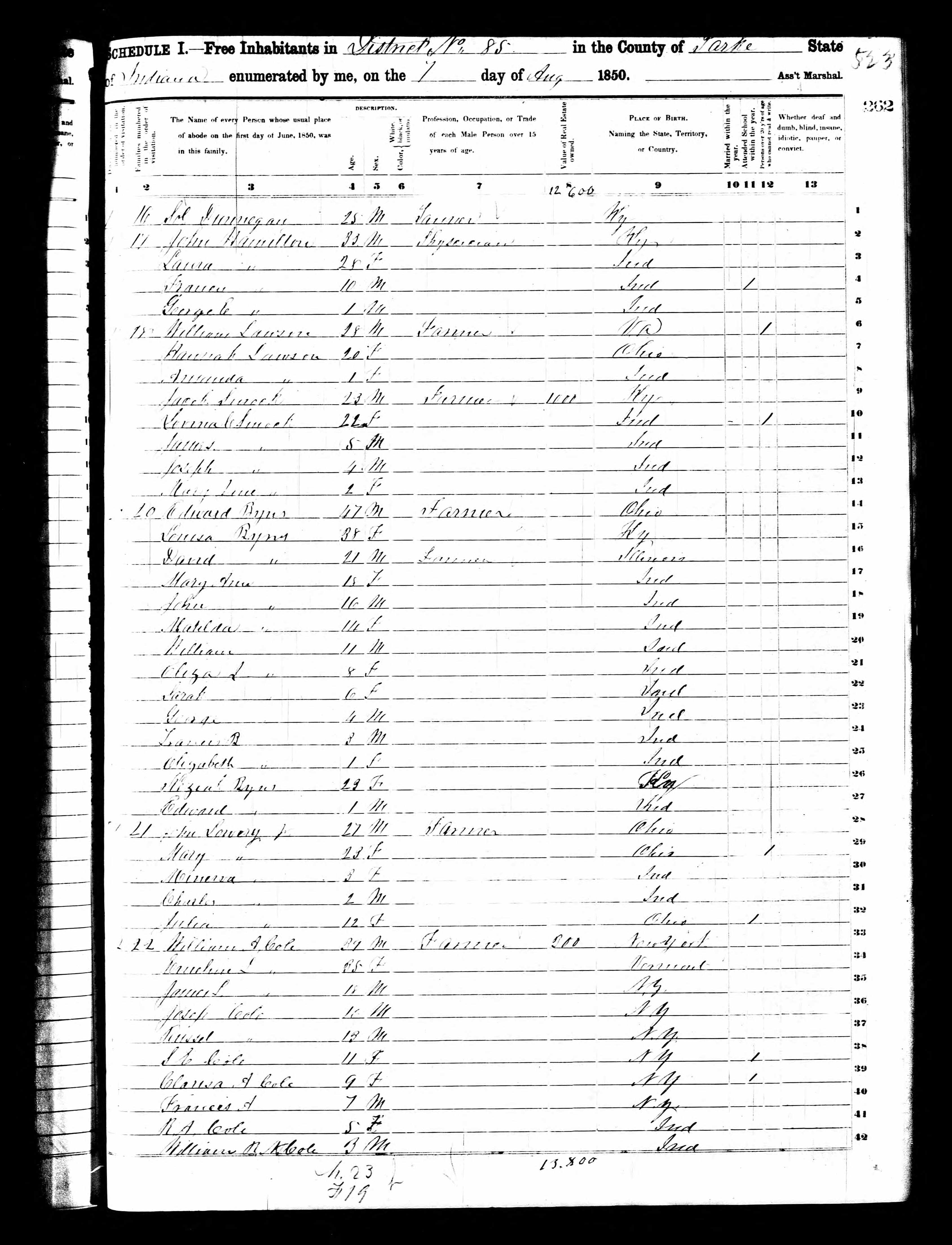 John Lowry & Mary Lowry - 1850 United States Federal Census