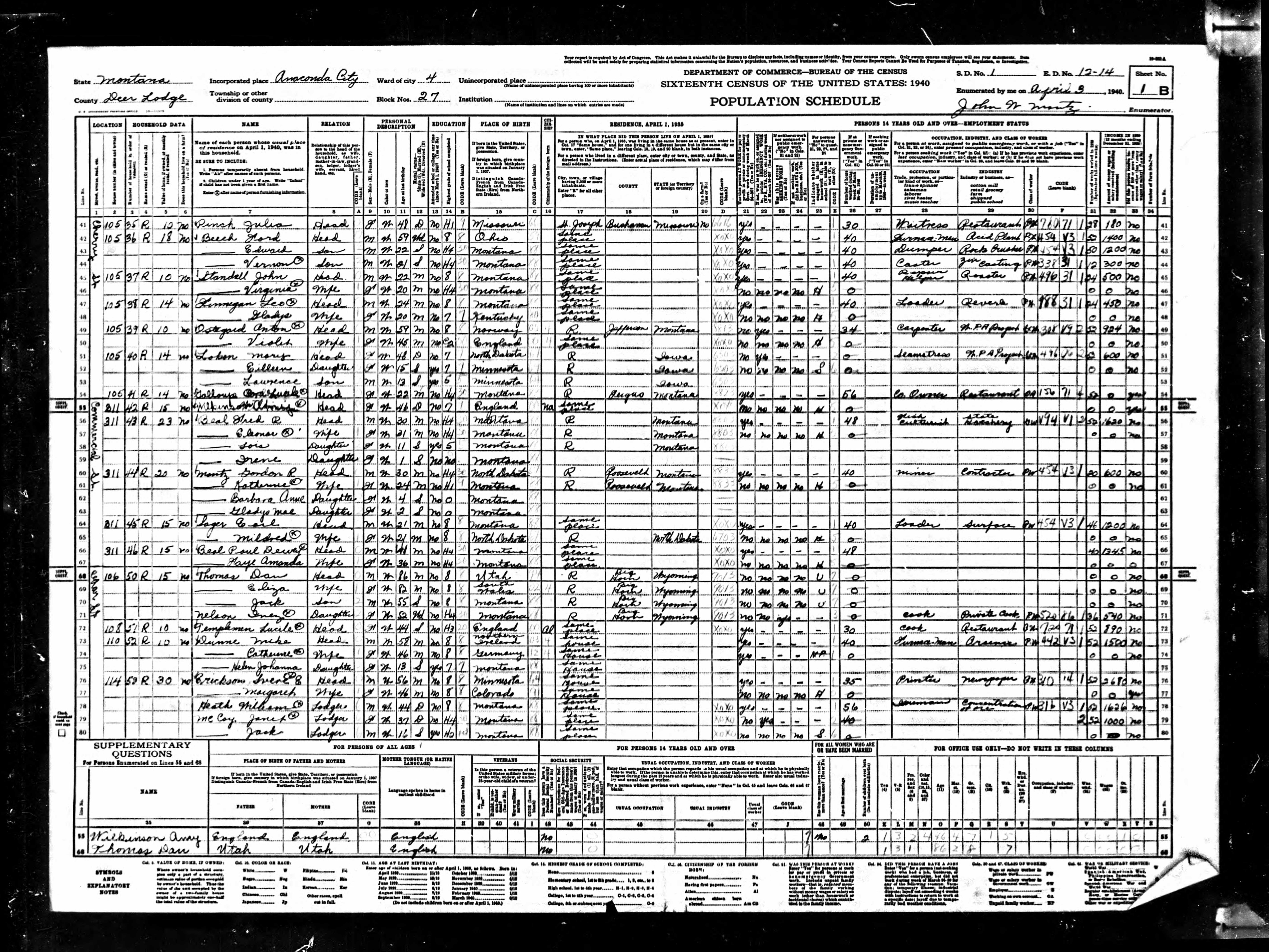 Inferred Residence in 1935 Anaconda, Deer Lodge, Montana