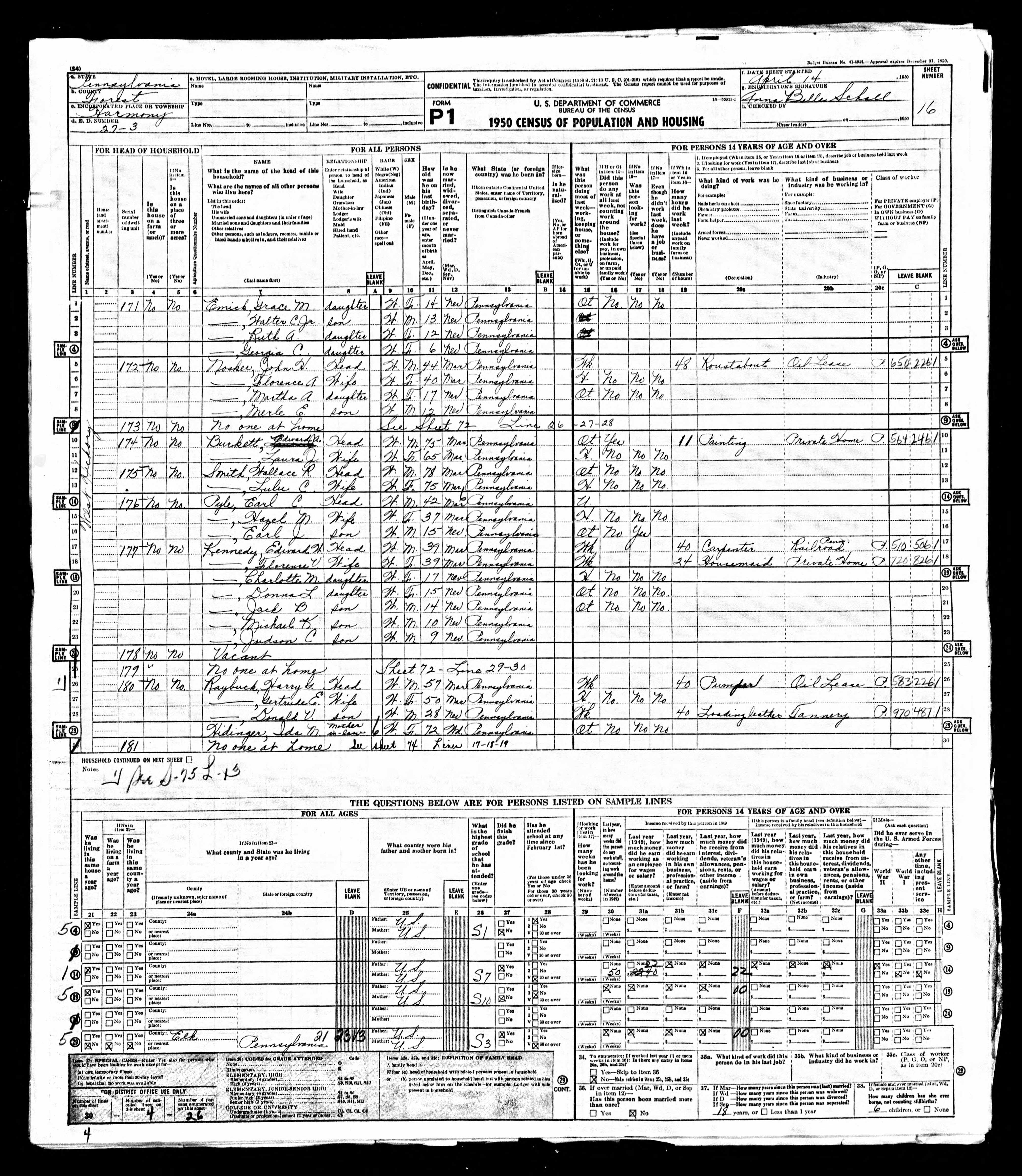 Harry Raybuck, Getrude Hidinger, & Ida Harriger - 1950 United States Federal Census