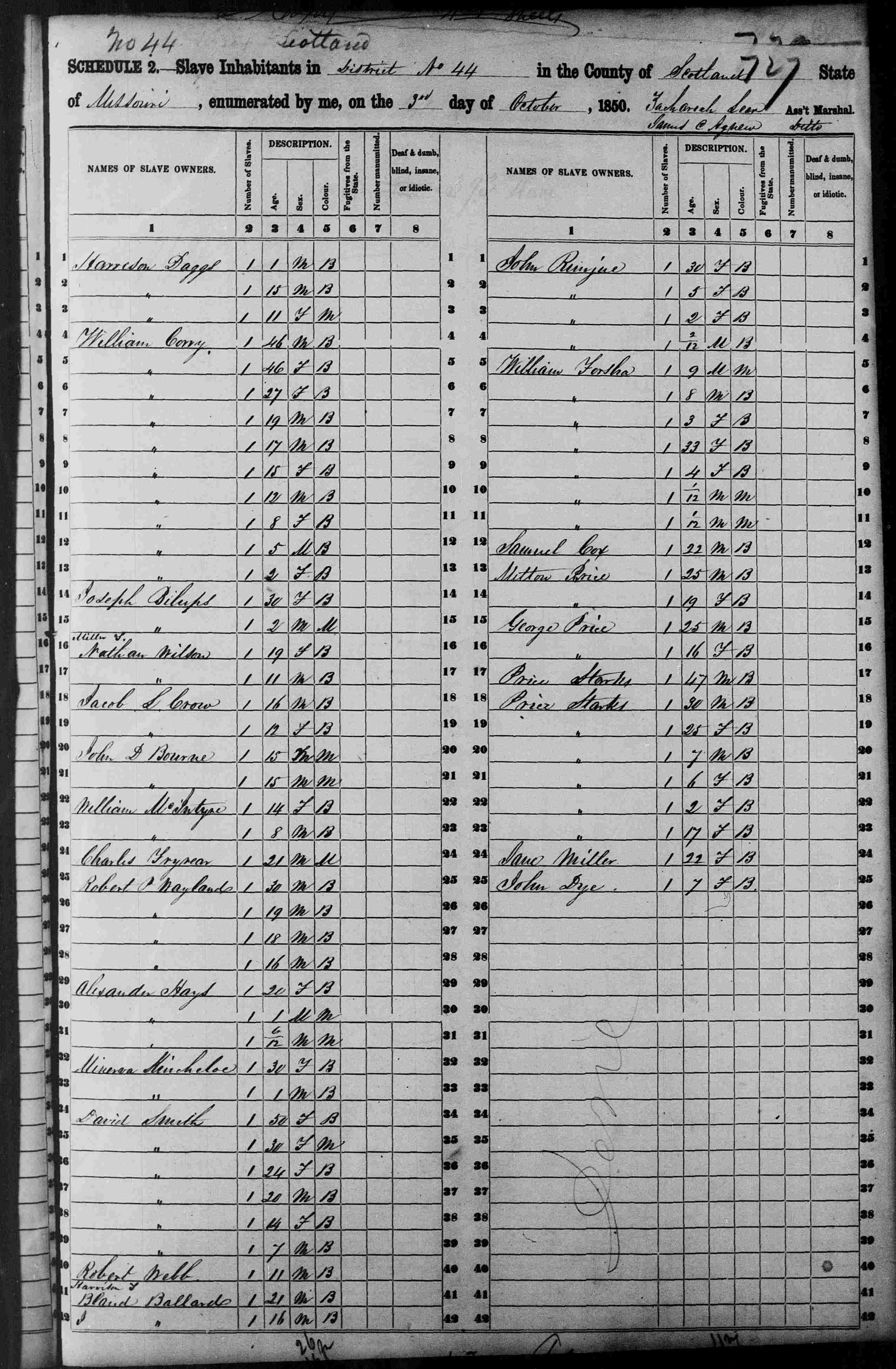John D Bourne, United States, Census (Slave Schedule), 1850