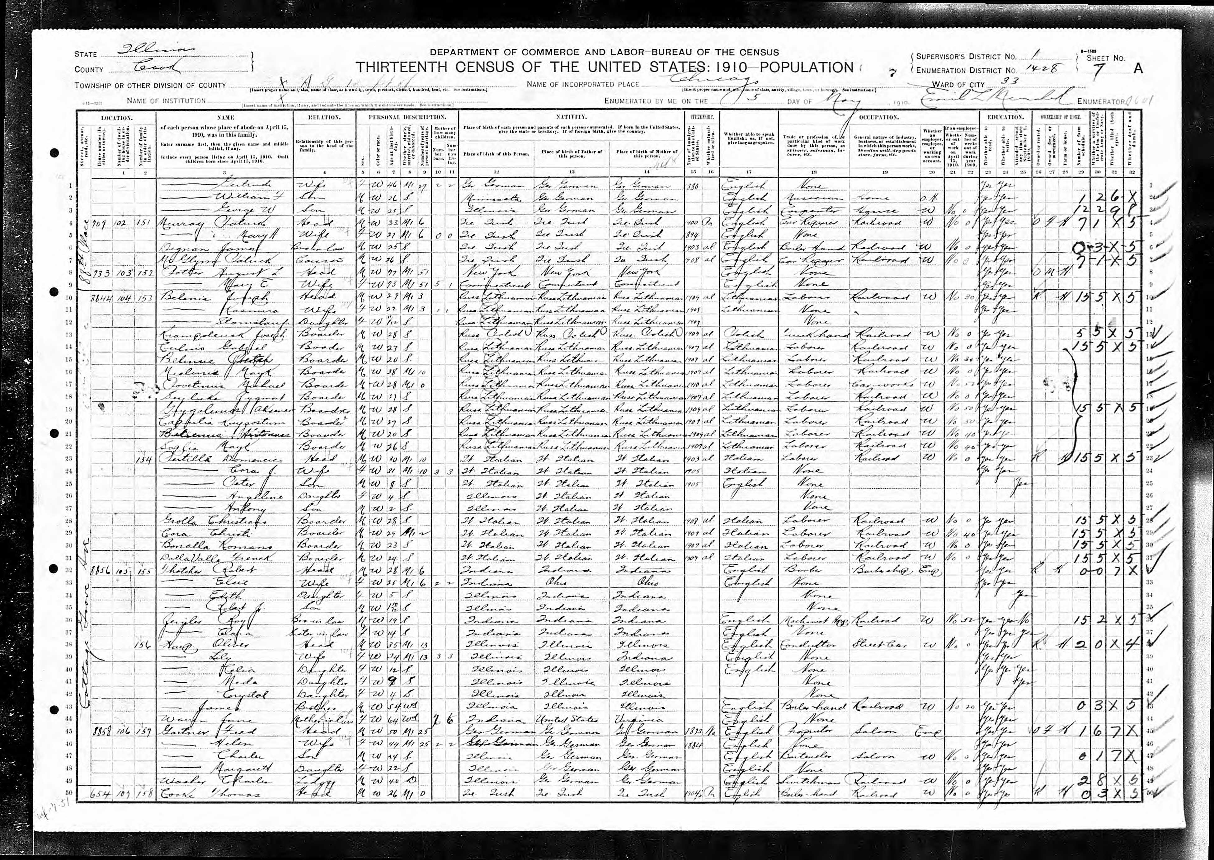 Home in 1910: Chicago Ward 33, Cook, Illinois