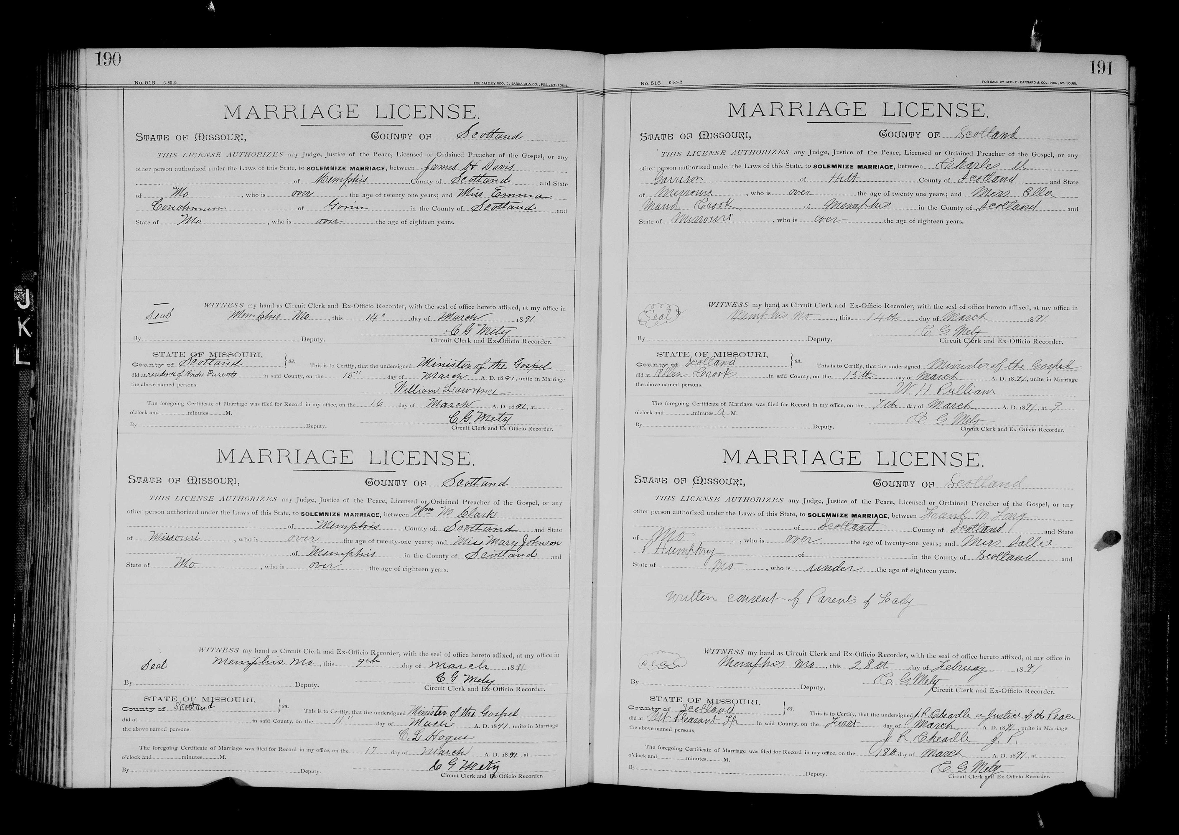 Mary J Johnson - Missouri, County Marriage, Naturalization, and Court Records, 1800-1991