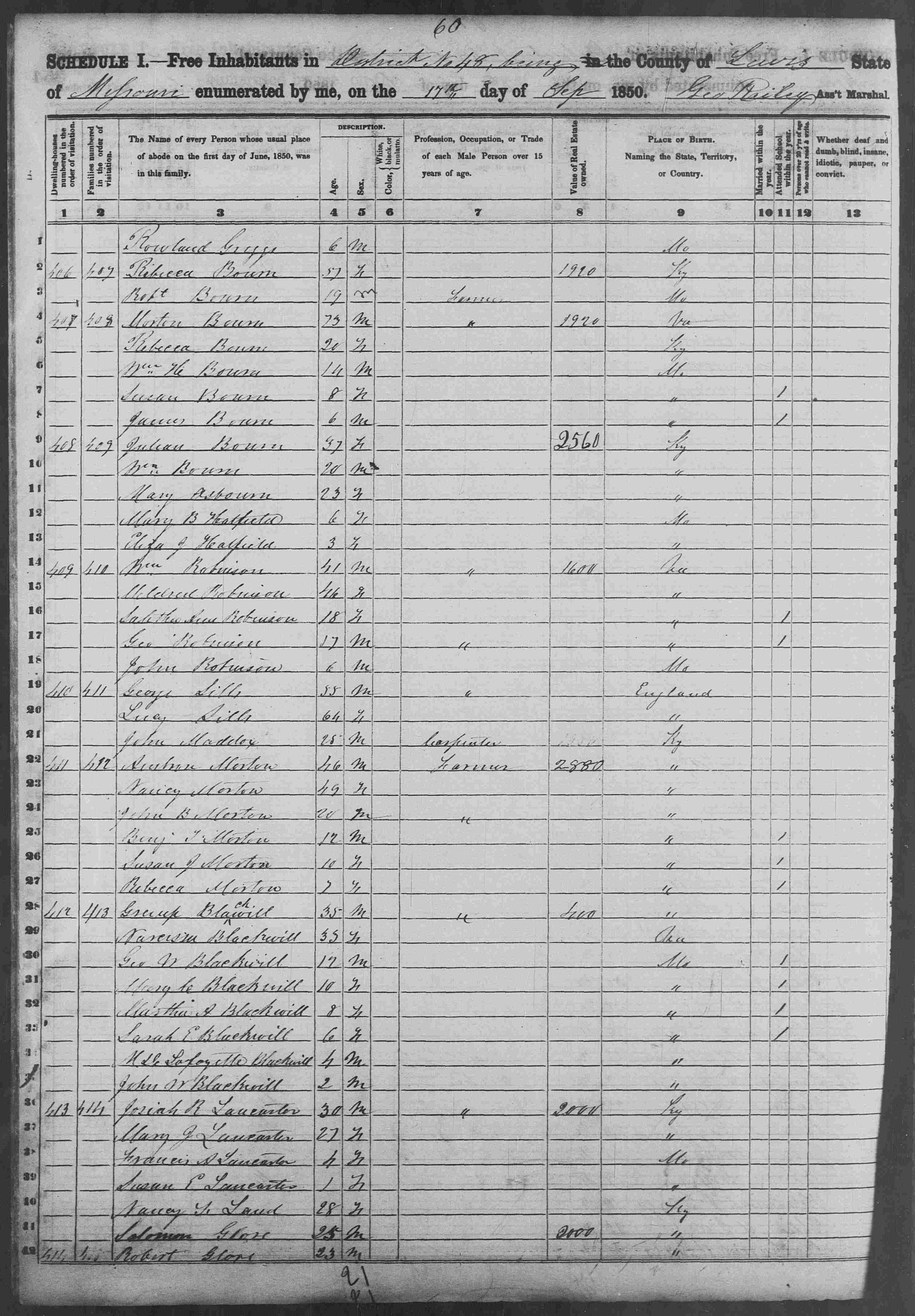Morton Bourn - United States, Census, 1850