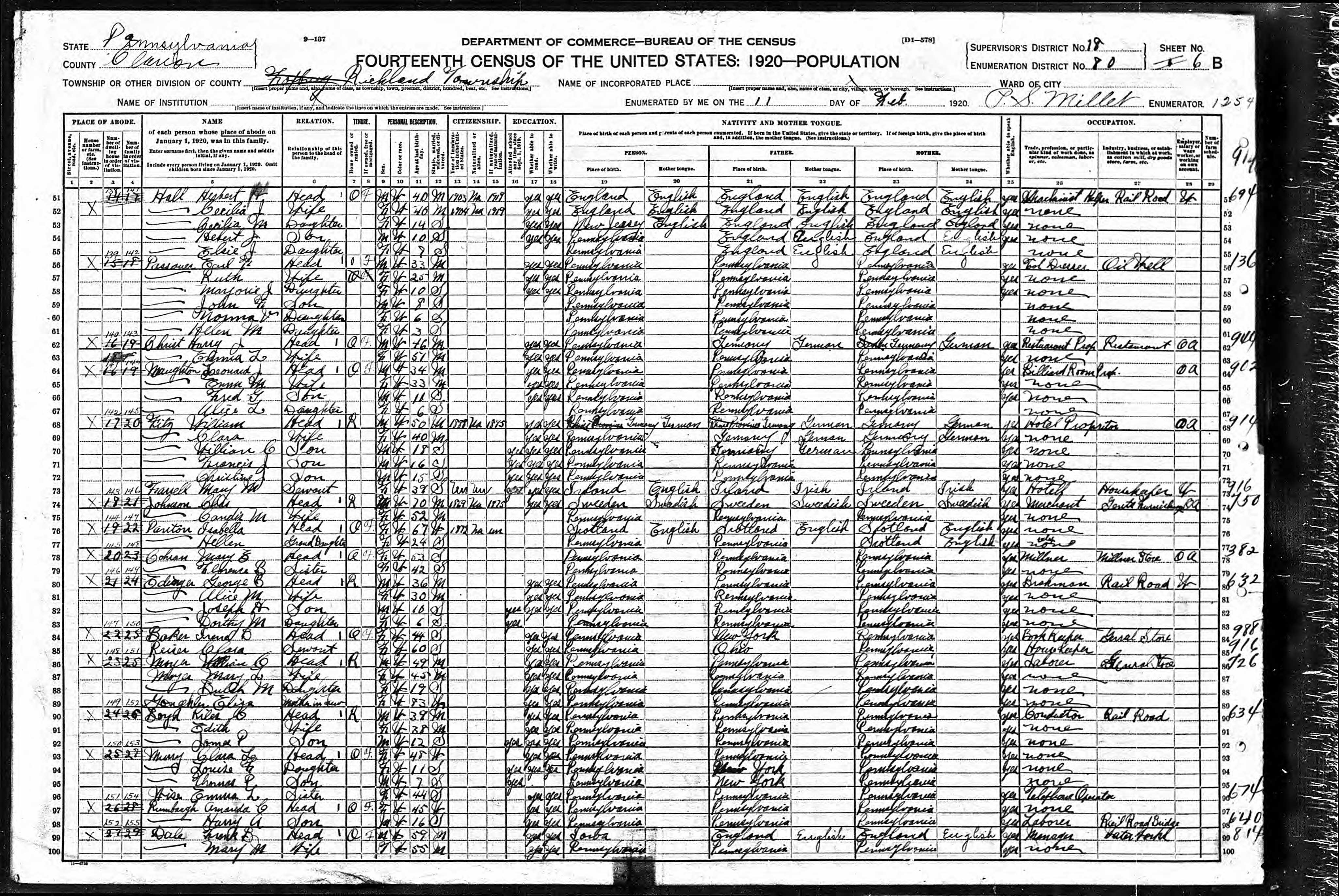 Home in 1920: Richland, Clarion, Pennsylvania