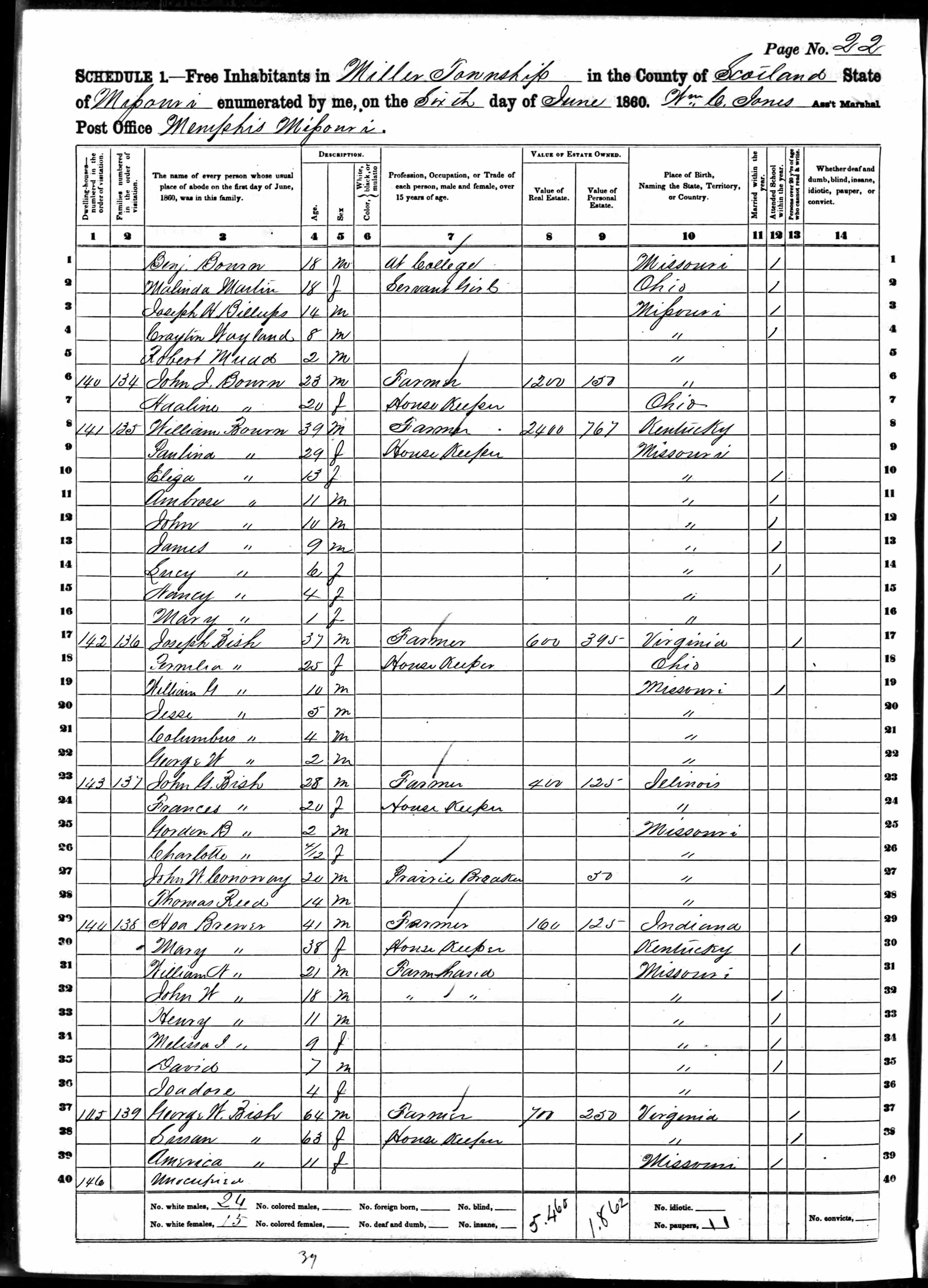 Bourn Family - 1860 United States Federal Census