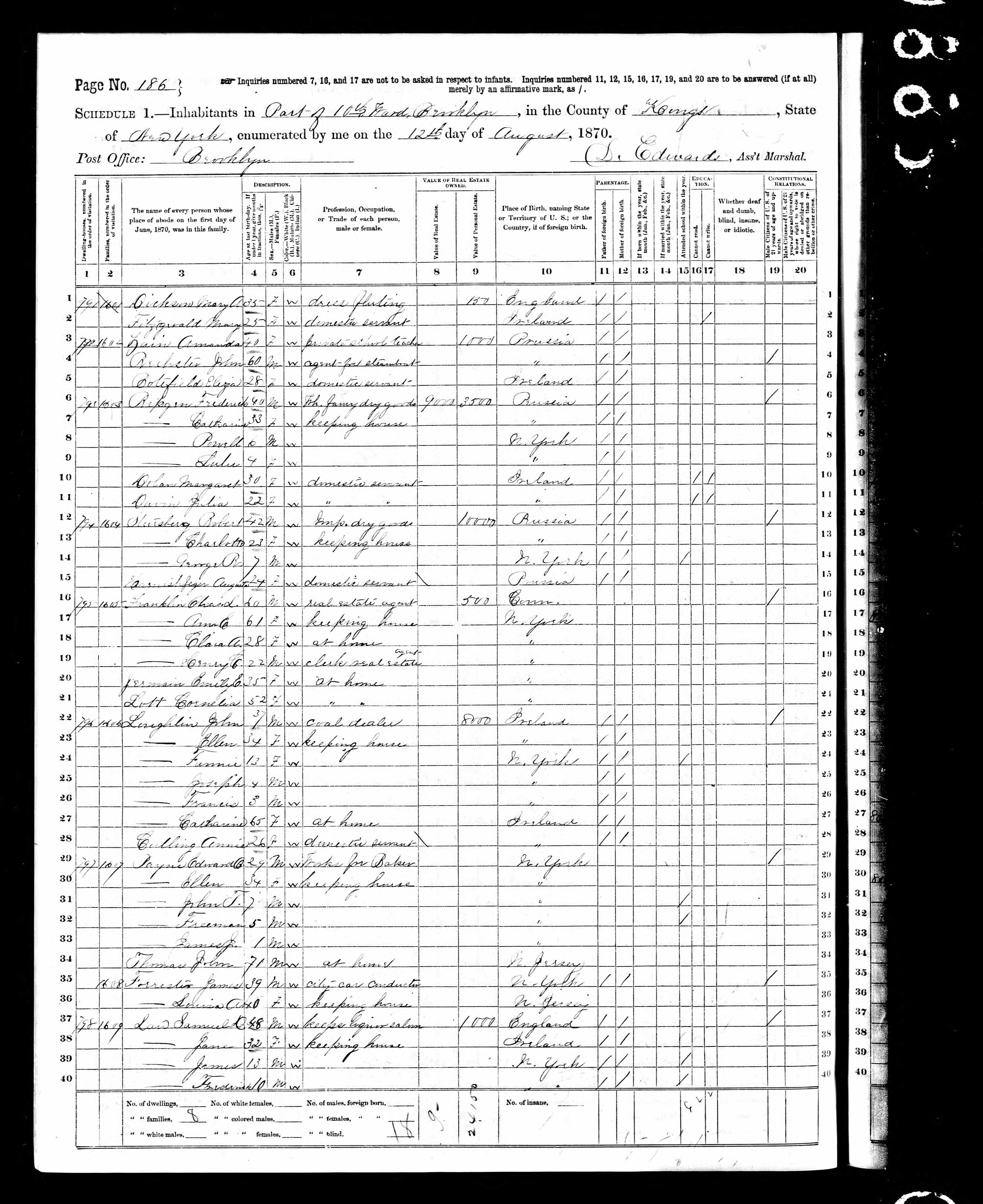 Home in 1870: Brooklyn Ward 10, Kings, New York