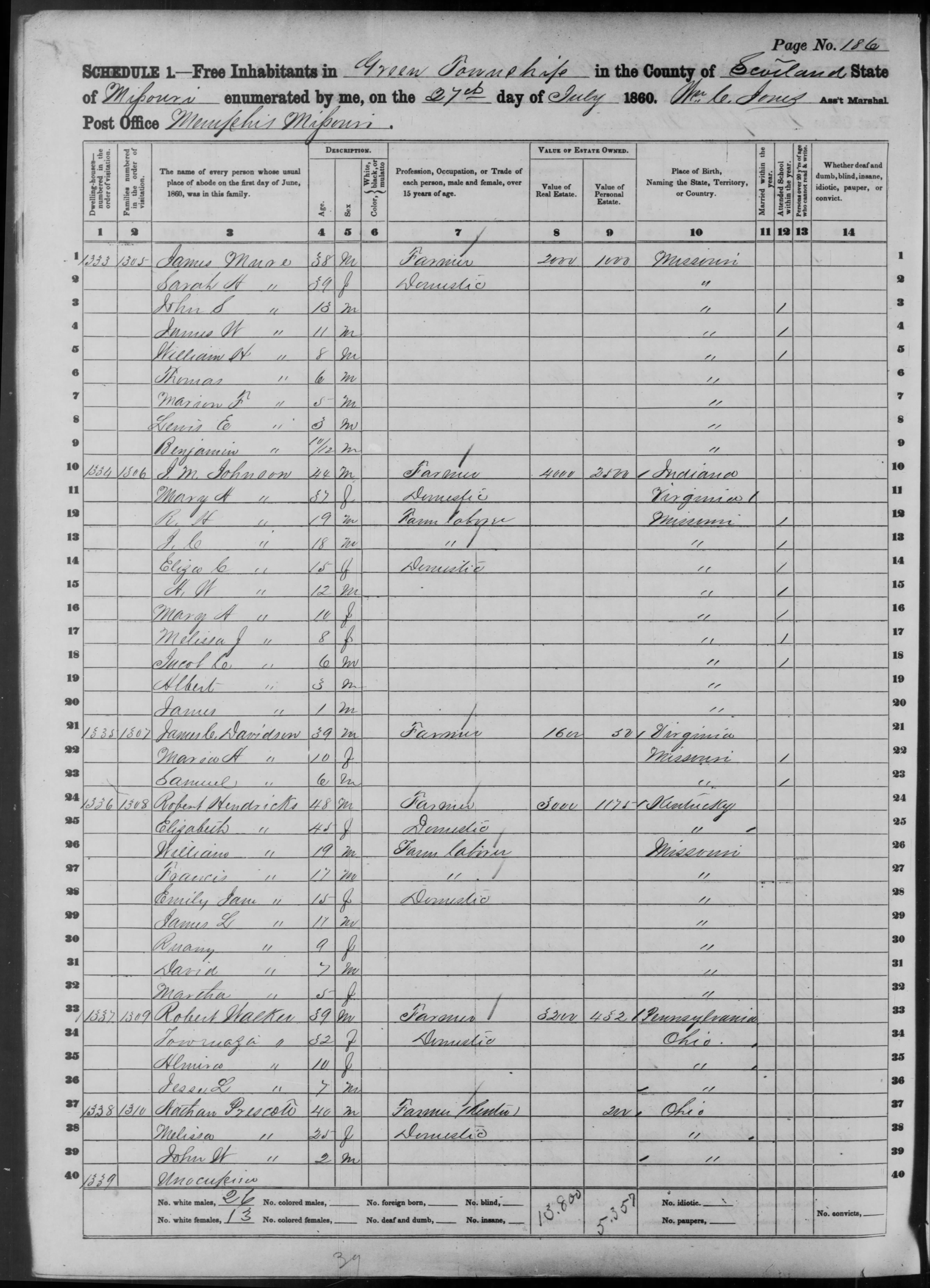 Jacob Marmon Johnson - 1860 United States Federal Census