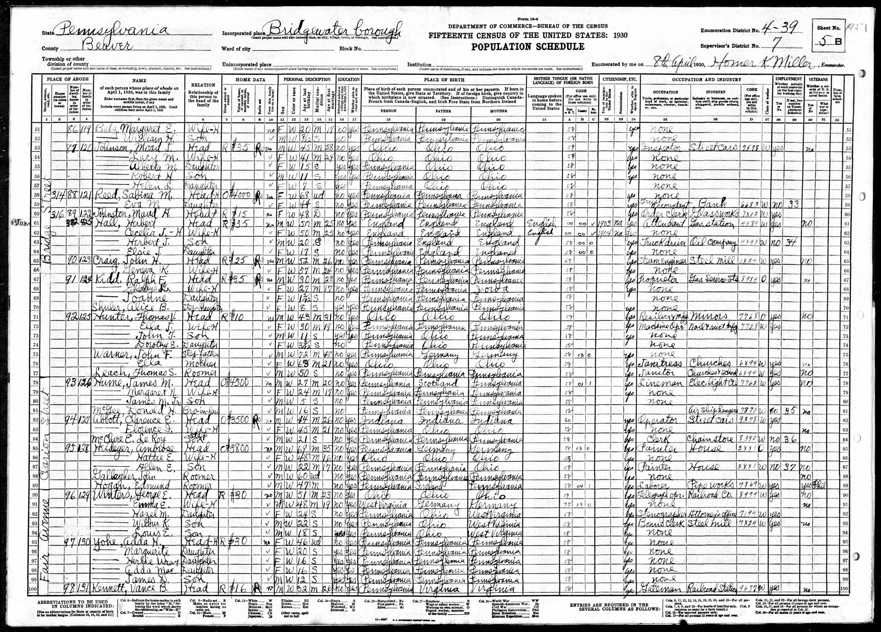 Herbert H Hall - 1930 United States Federal Census