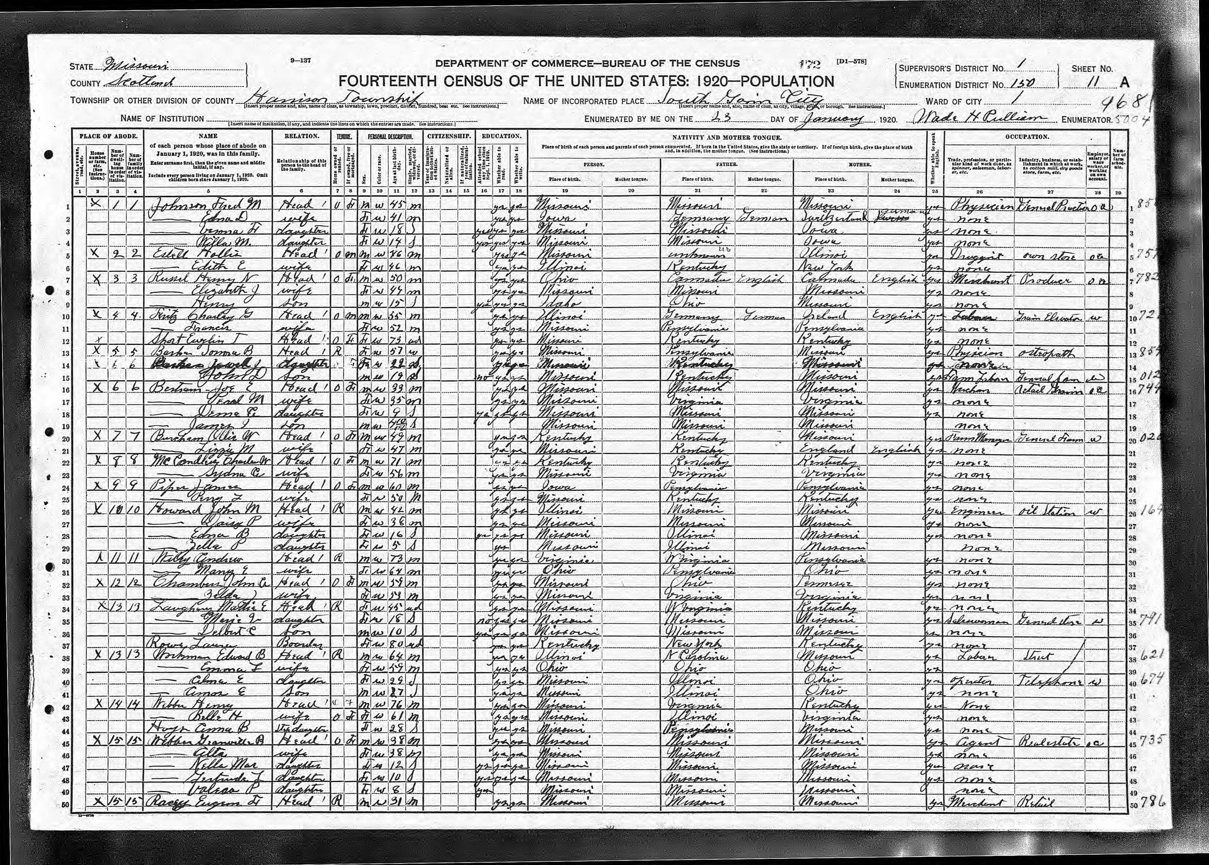 Head Fred M Johnson M 45 Missouri