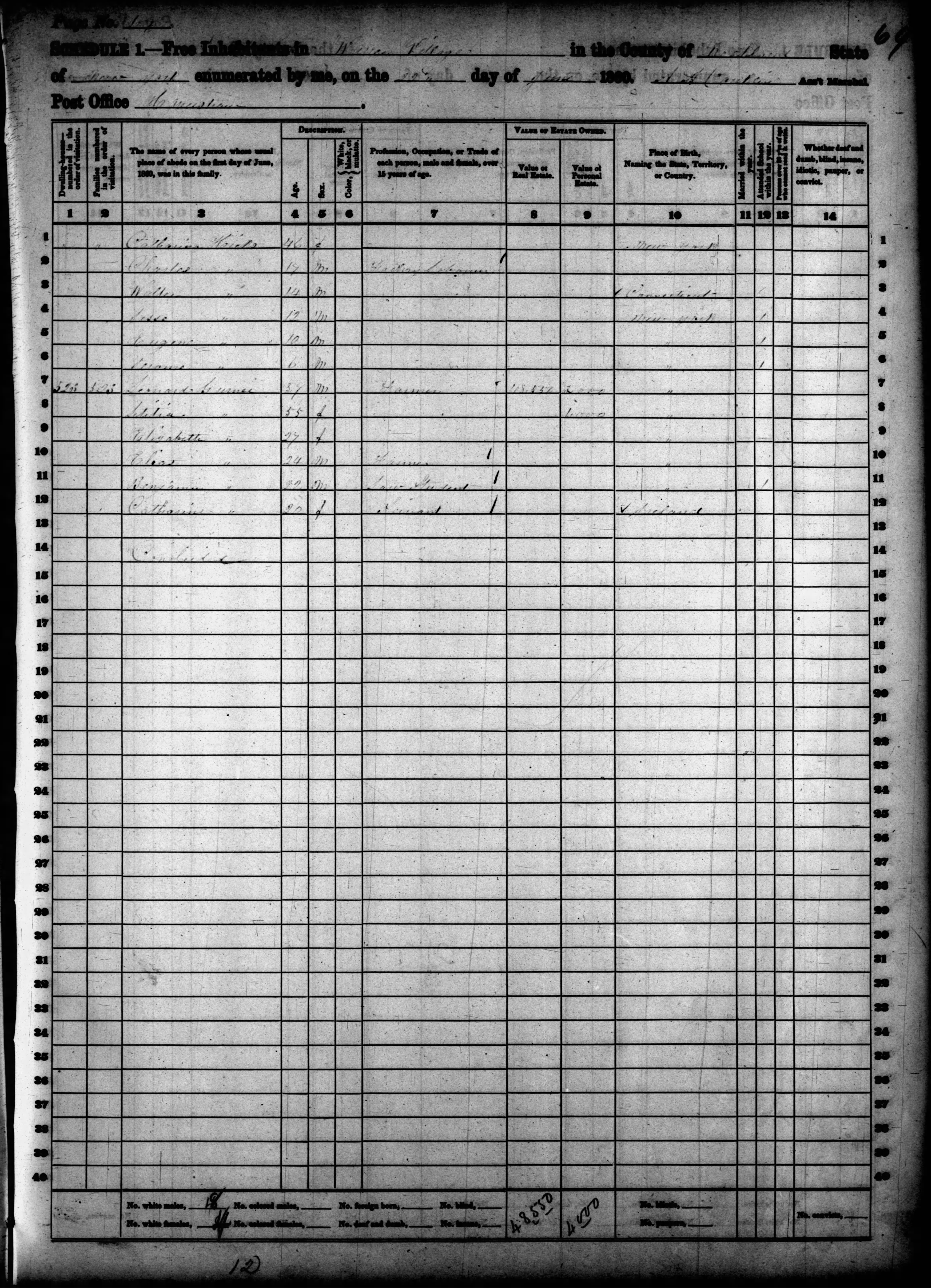 (File is page 69 of the census. Charles Hicks was on the page before. Only page 69 is shown here for now.)