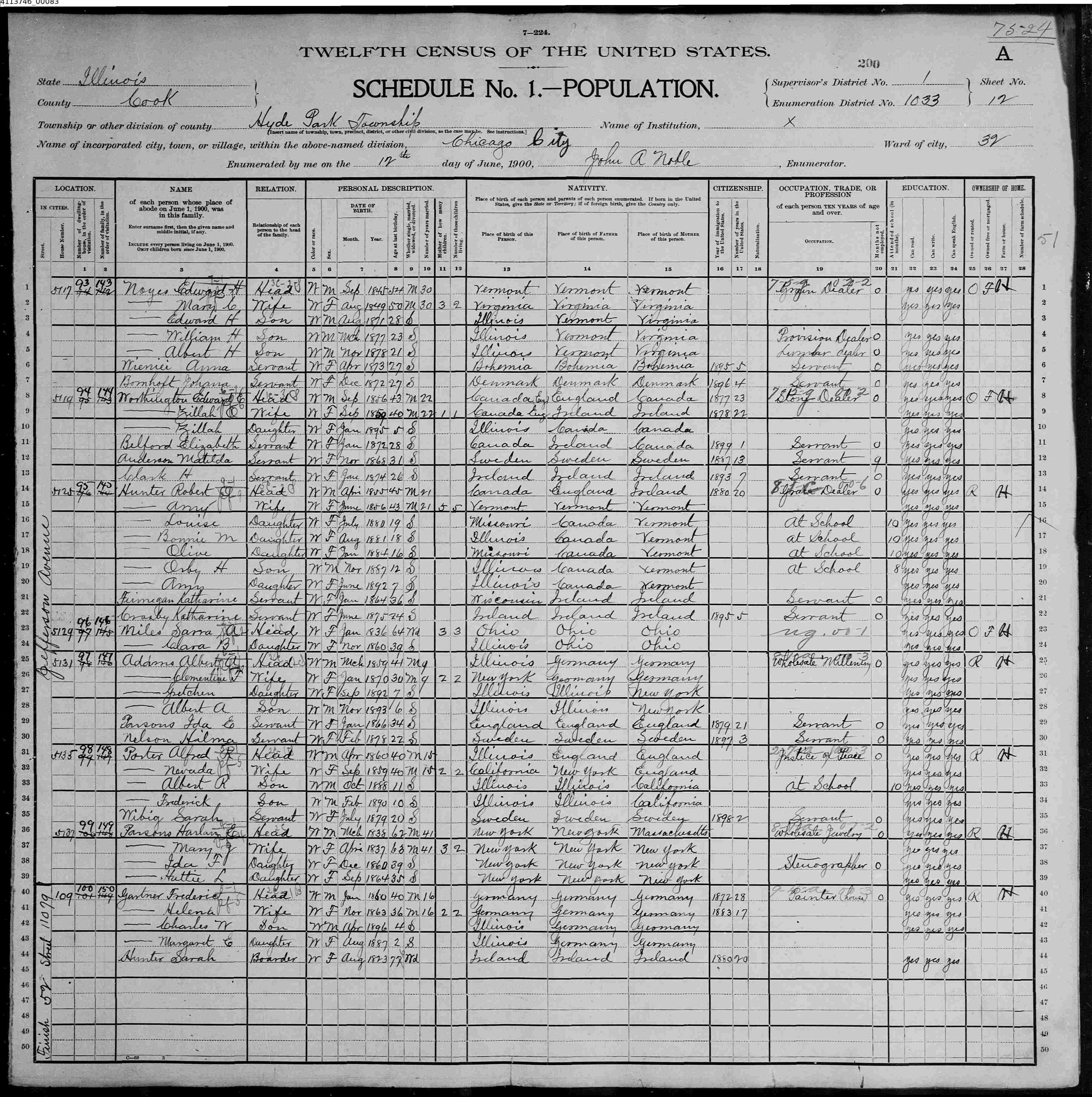 Frederic Gartner - United States Federal Census 1900