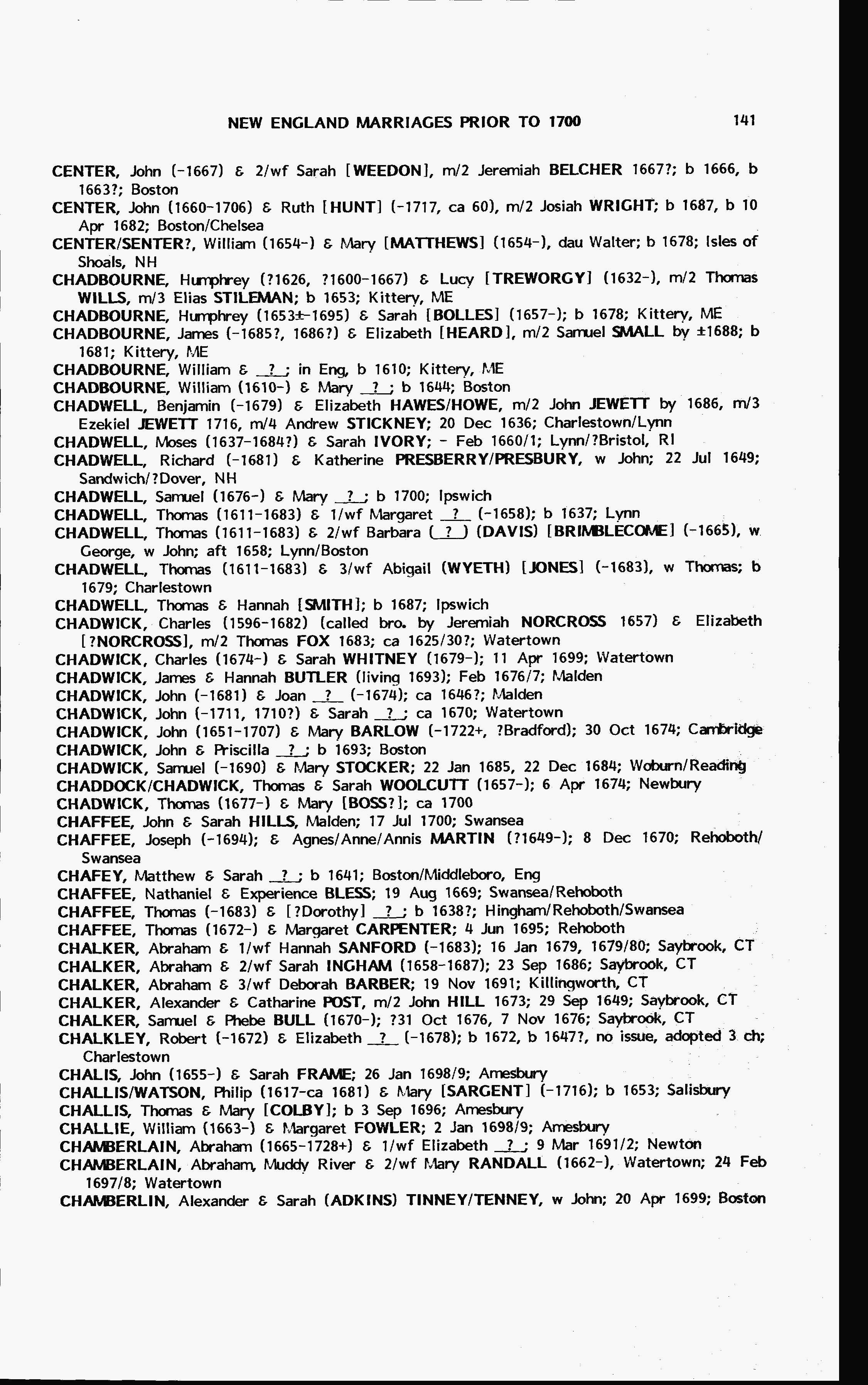 John Chadwick & Joan Shepard - U.S. New England Marriages Prior to 1700