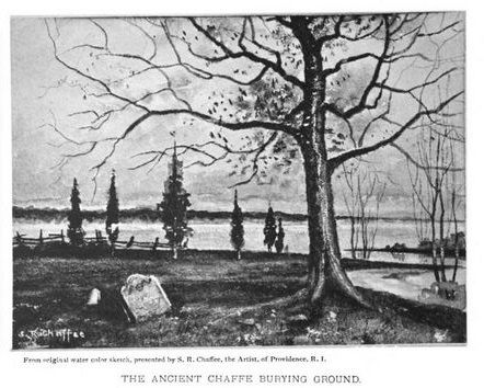 THOMAS CHAFFE was born c.1610, possibly in Dorsetshire or Devonshire, England. The name of the ship he arrived on and the port he left from is still unknown, but it may have been on a ship named Speedwell, Diligent, John & Dorothy, Rose, or Mayflower and left from a port such as Plymouth, Weymouth, England. There are no records of which part of England Thomas Chaffe/Chaffy was born, but very possibly the southern part of England. Thomas Chaffe arrived in Hingham, Massachusett Bay Colony, on April 22, 1637. Thomas received his first lot of land for planting from the Township of Hingham on July 17, 1637. Thomas lived on Batchellor [Bachelor] Street, the main street through Hingham. Thomas married, possibly a woman named Dorothy/Dorthea Unknown, who very likely was born in England also. Thomas married after arriving to Hingham, or Hull [old name Nantasket], although there are no records in existence of a marriage or who Thomas Chaffe married. Thomas is known to have two sons, Joseph and Nathaniel. Thomas died after the filing of his will July 25, 1680, and before the inventory was announced on May 15, 1683, in Swansea, Massachusetts Bay Colony. It is unknown what happened to his wife. She is not mentioned in his will or any other known documents. It is unknown where THOMAS CHAFFE was buried, possibly in the present area of Barrington, Bristol County, Rhode Island, where his farm was located, which was in Swansea, Massachusetts Bay Colony, at that time period. [http://www.chafetree.com/135famous_chaffees1945.html]