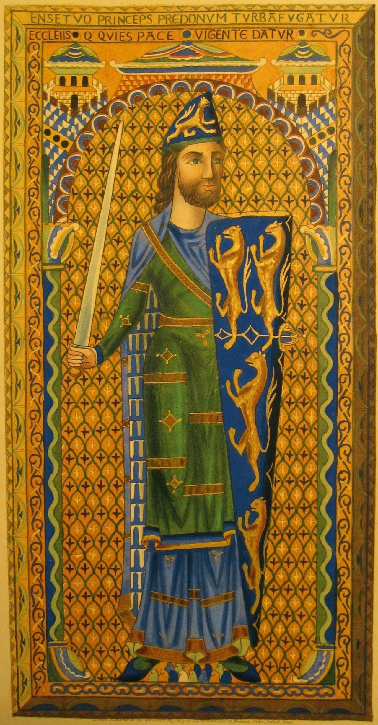 Geoffrey V — called the Handsome and Plantagenet — was the Count of Anjou , Touraine , and Maine by inheritance from 1129 and then Duke of Normandy by conquest from 1144. By his marriage to the Empress Matilda , daughter and heiress of Henry I of England , Geoffrey had a son, Henry Curtmantle , who succeeded to the English throne and founded the Plantagenet dynasty to which Geoffrey gave his nickname.