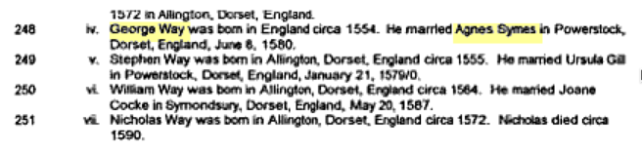 marriageAgnes Symes Powerstock, Dorset, England ⇓ 2 Sources ⇓ |