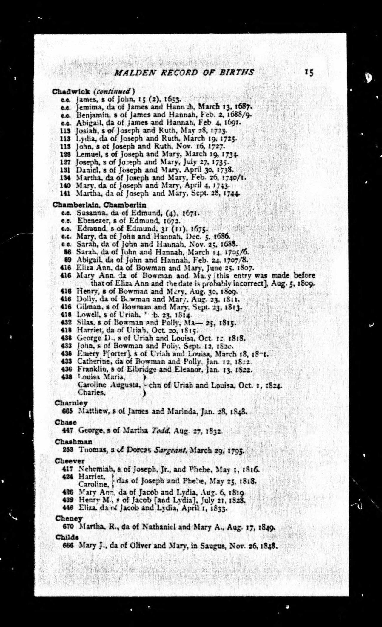 birth of childJemima Chadwick Malden, Massachussetts, USA ⇓ 3 Sources ⇓ |