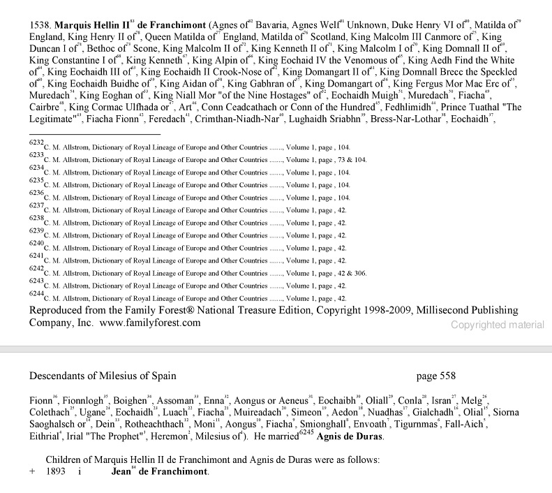 From "The Family Forest Descendants of Milesius of Spain for 84 Generations"