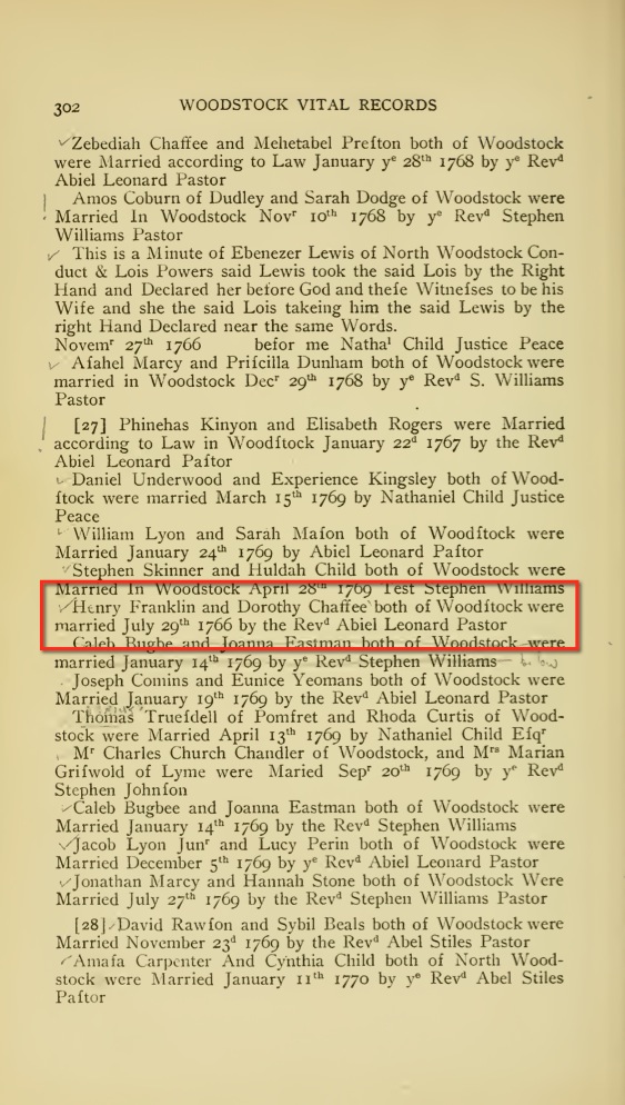 marriageWoodstock, Connecticut, USA ⇓ Married by the Reverend Abiel Leonard 1 Source ⇓ |