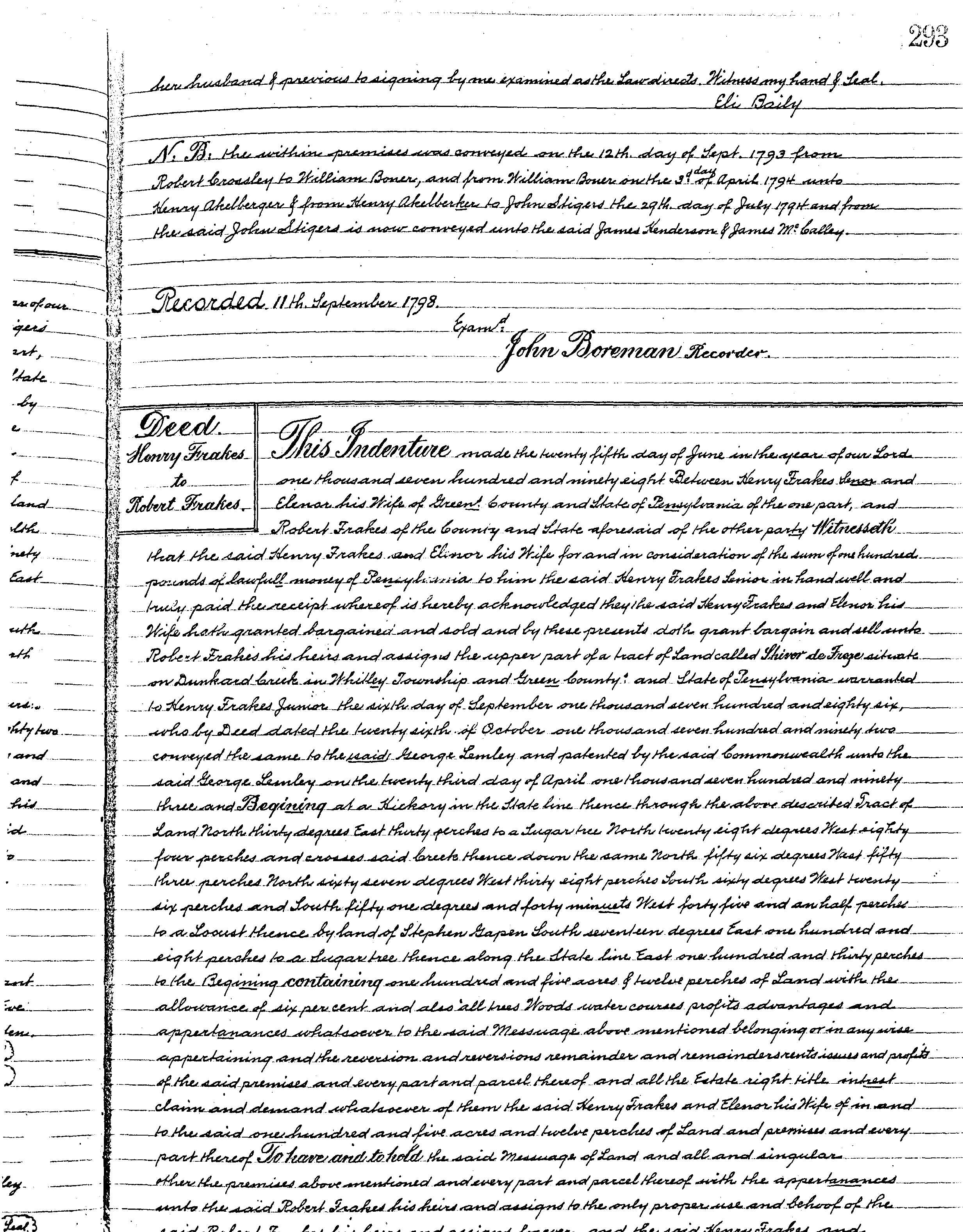 Actual Deed from Henry Frakes Sr. to his son Robert Frakes.