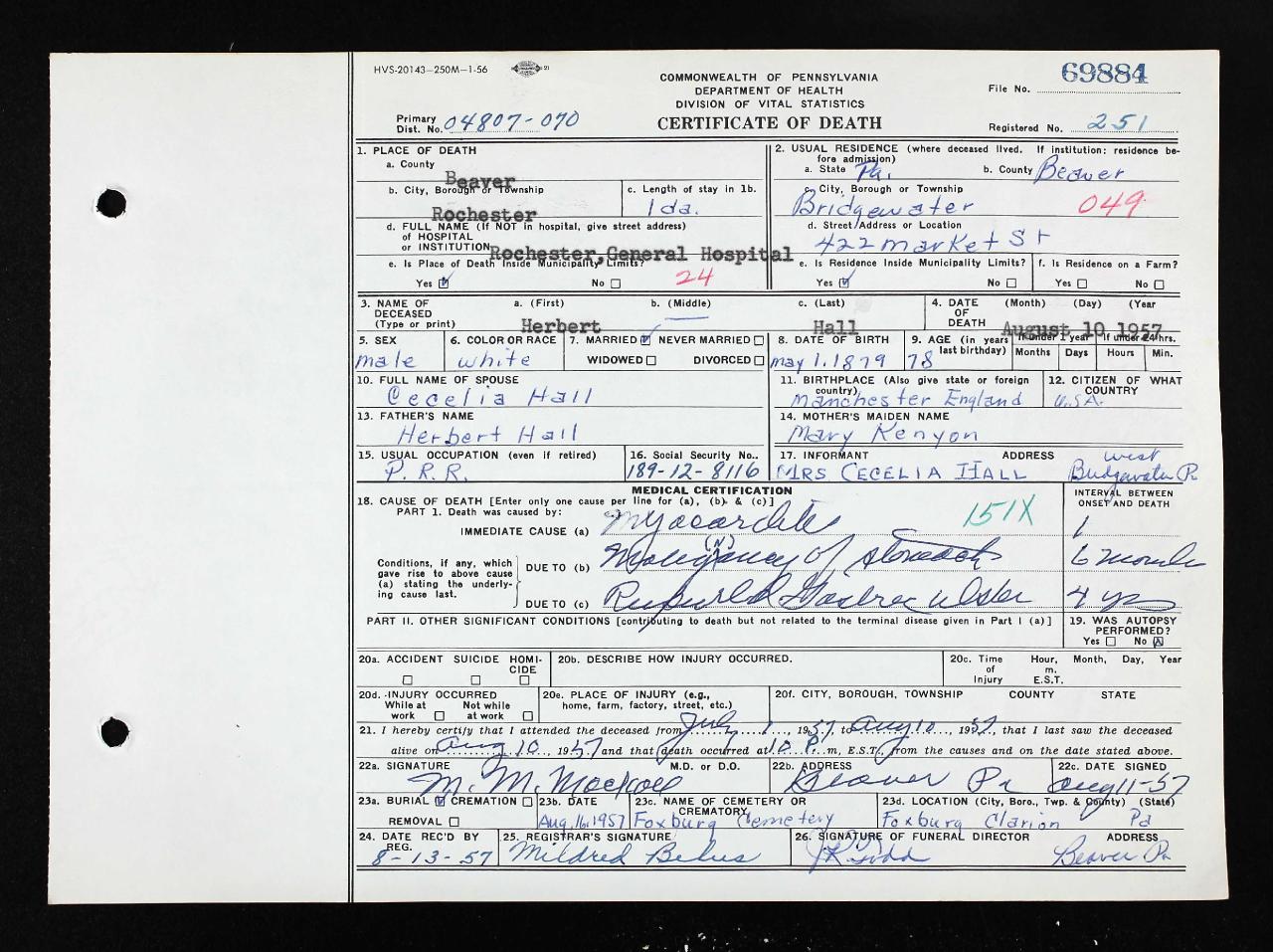 residenceBridgewater, Beaver, Pennsylvania, USA ⇓ Herbert is working as a night watchman for a steam railway 1 Source ⇓ |
