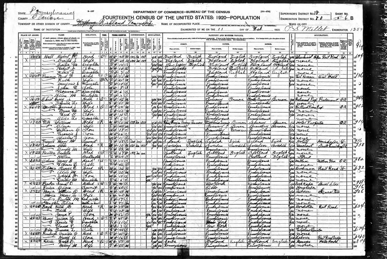 residenceRichland, Clarion County, Pennsylvania, USA ⇓ Working for the Railroad Industry 1 Source ⇓ |