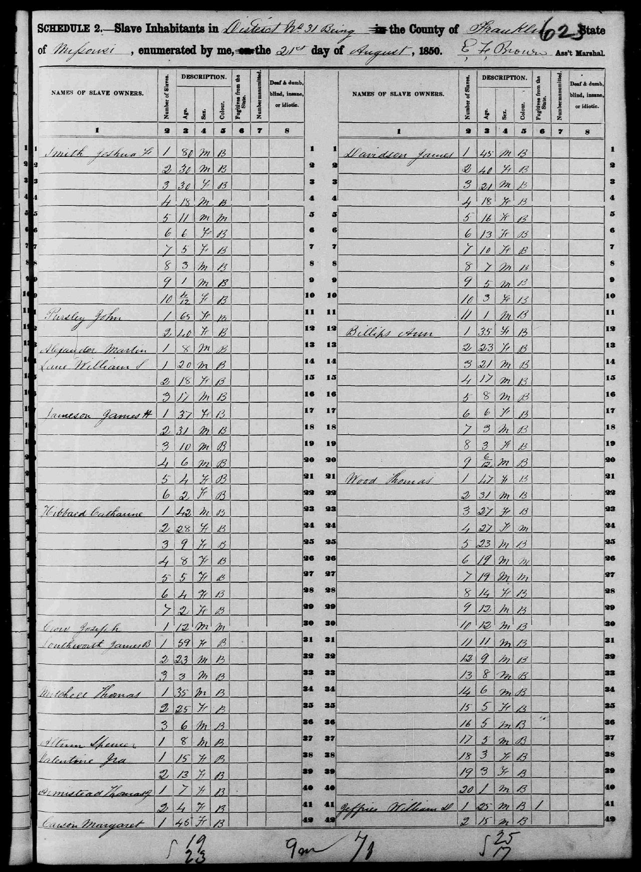 residenceSt. John, Franklin, Missouri, USA ⇓ They lived three houses away from Jacob Marmon Johnson and their daughter Mary Ann. There is also a Jordan Davidson living two or three pages away. 1 Source ⇓ |