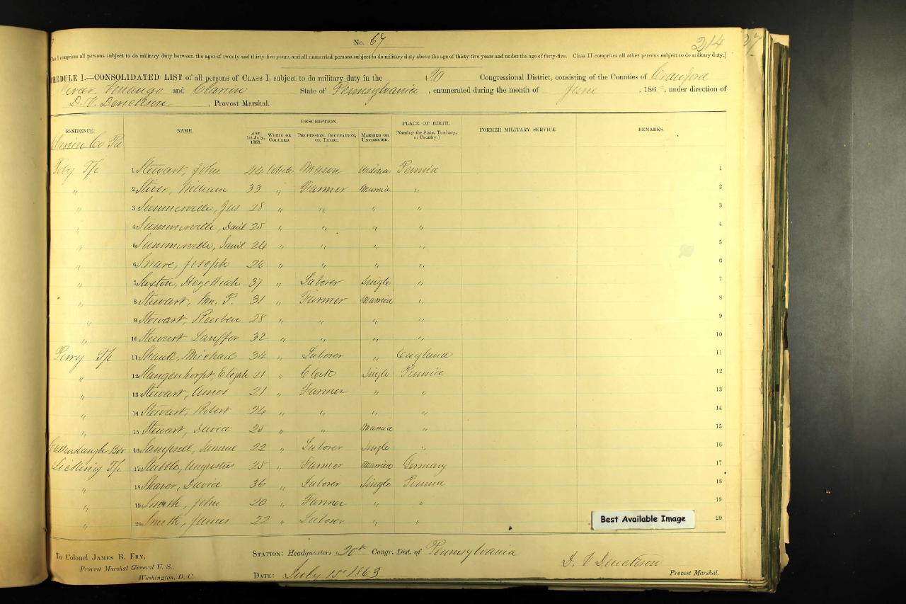 militaryToby, Clarion, Pennsylvania, USA ⇓ He was drafted for the Civil War. Pennsylvania was a Union State that played a critical role in the Civil War, supplying over 360,000 soldiers. 2 Sources ⇓ |