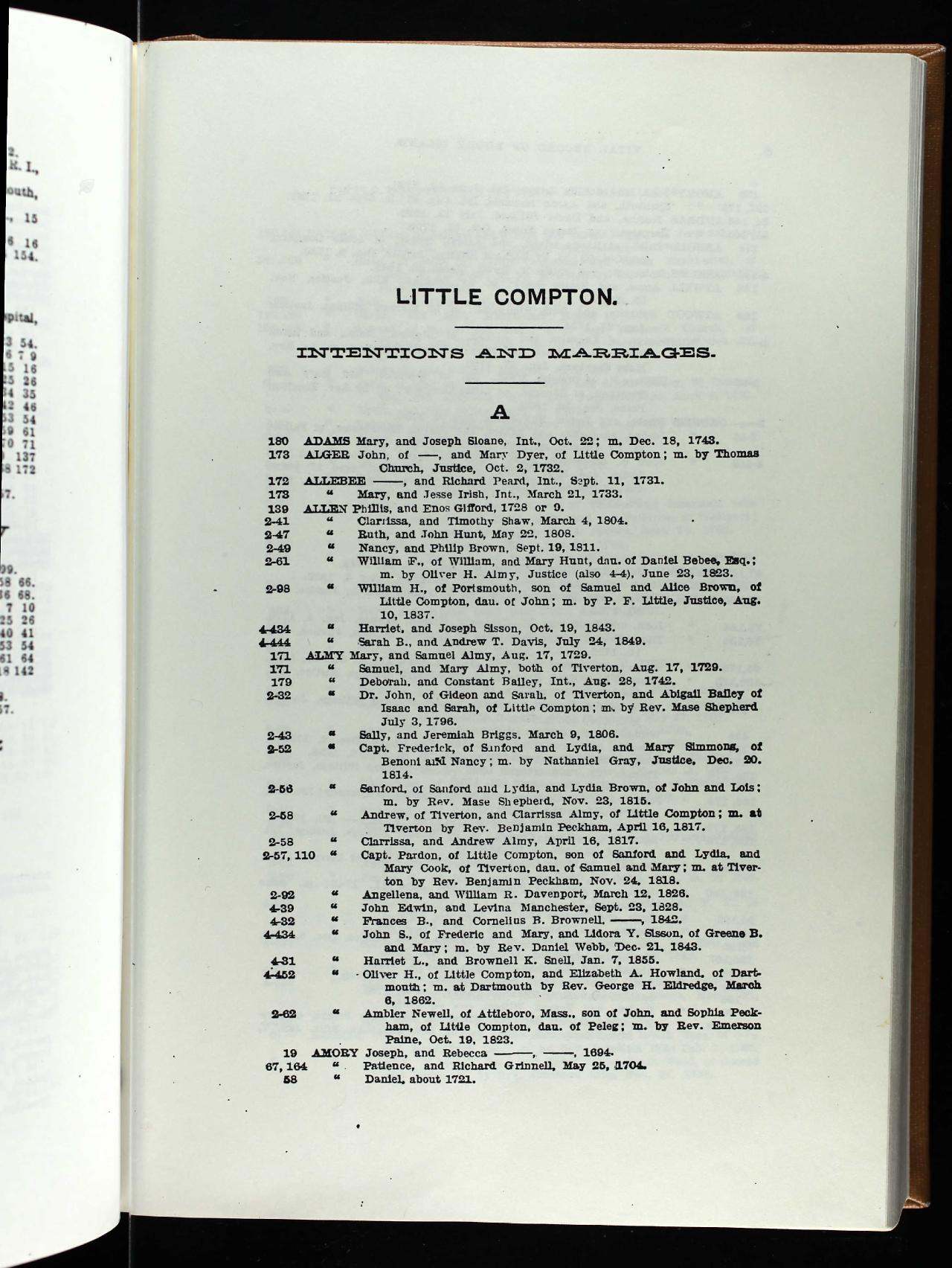 marriageMary Albee Little Compton, Rhode Island, USA ⇓ They later settled in Nine Partners, New York. 2 Sources ⇓ |